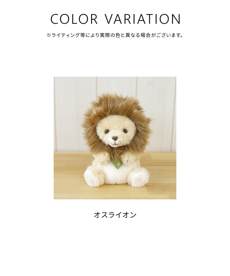 本物を彷彿とさせる野性的でワイルドなたてがみが印象的な、大人気のぬいぐるみです。特徴は顔とボディの絶妙なバランスで、見ていて飽きないキュートなアイテムです。ボリューム満点でふさふさな頭を毎日撫でてあげてください。