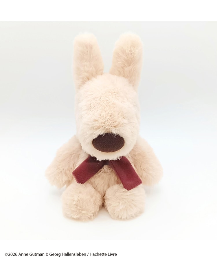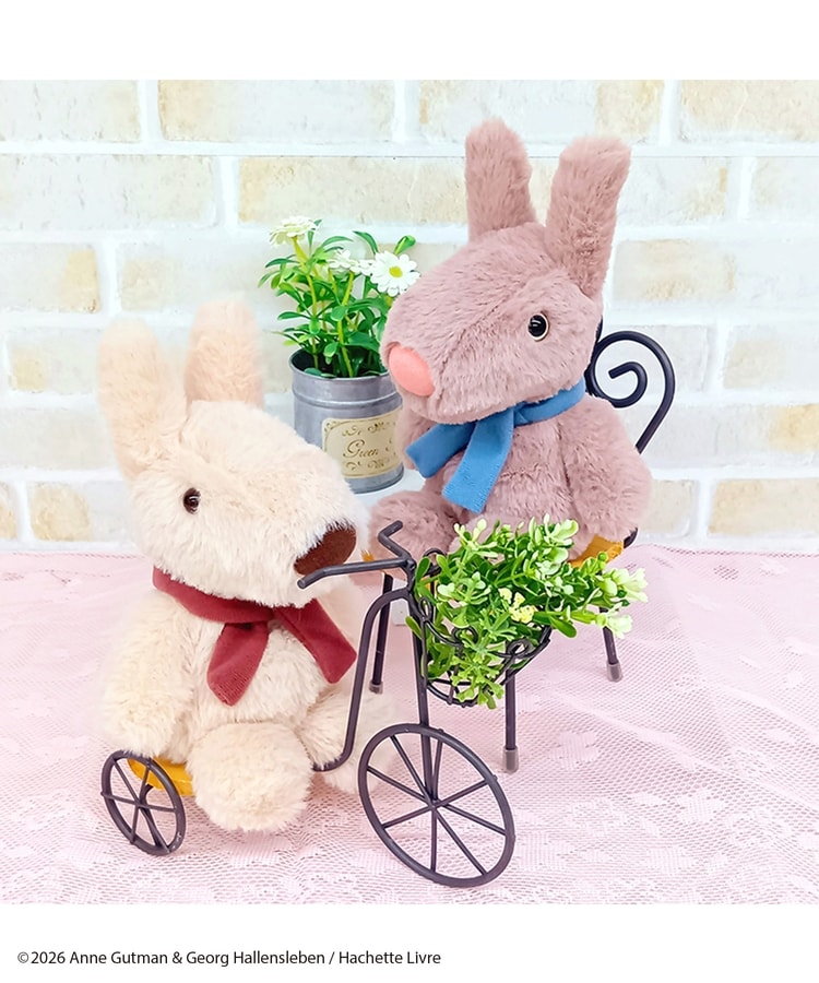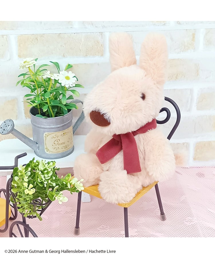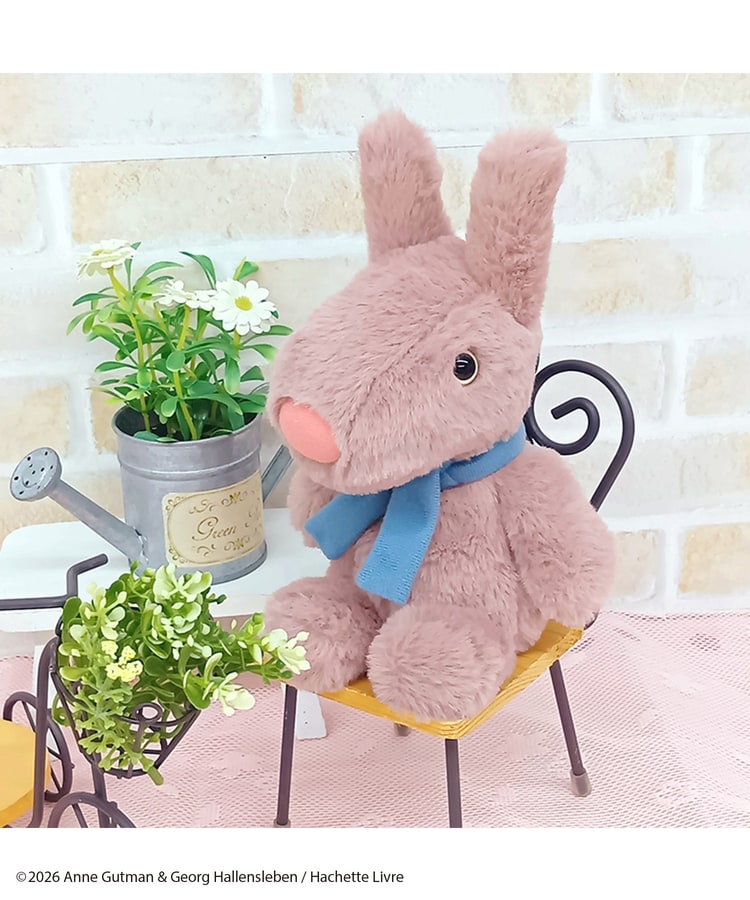 淡いピンクのカラーが上品で可愛い、ガスパールのお座りぬいぐるみ。