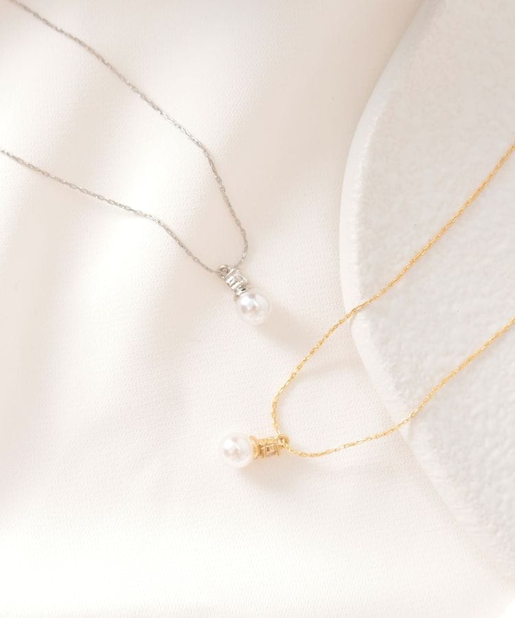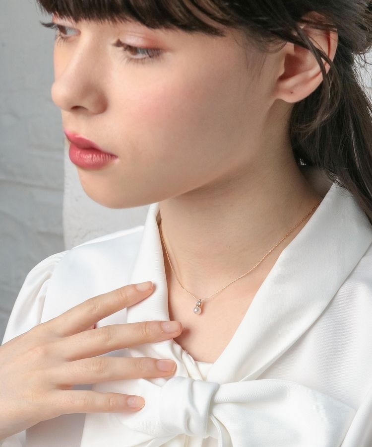 さりげない輝きを放つ、小さめビジュー×パール調の上品なデザイン。
