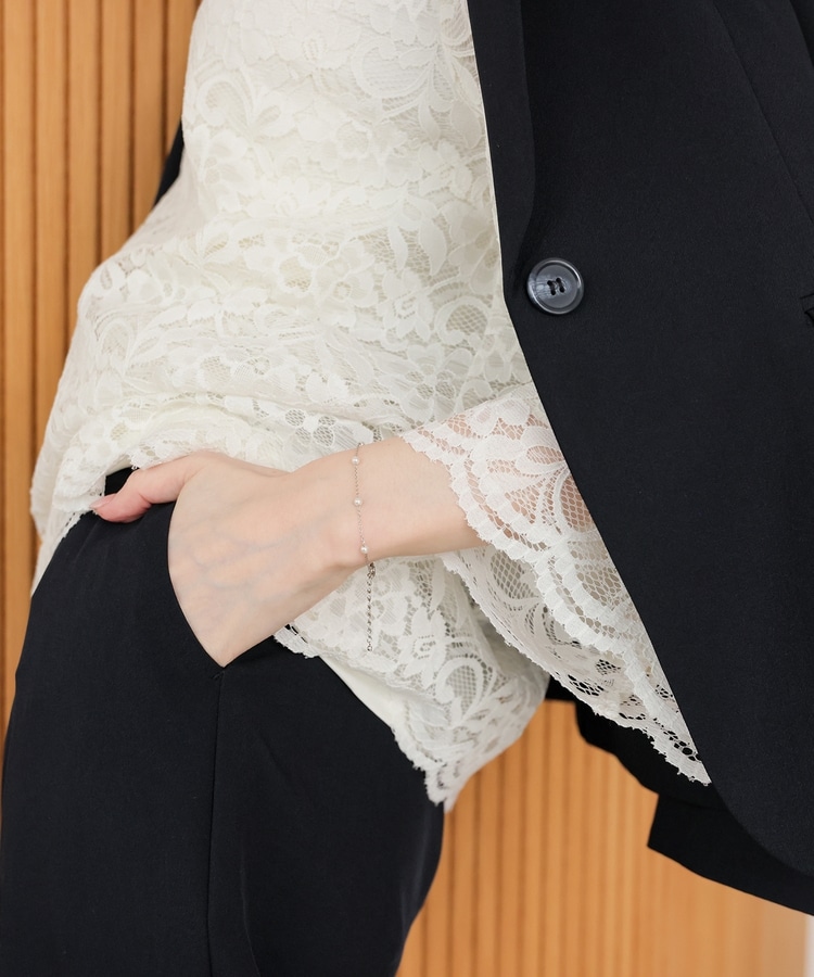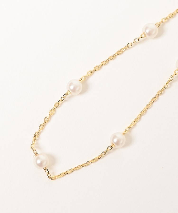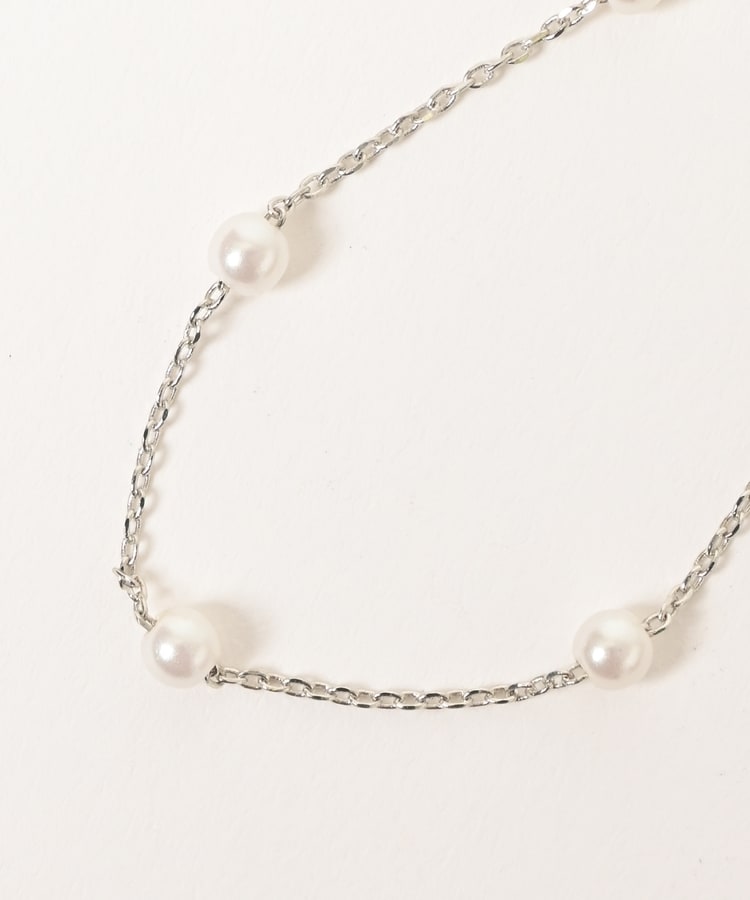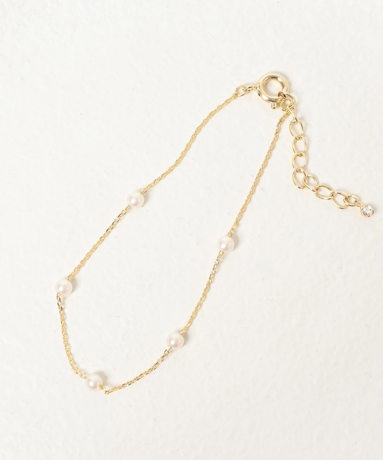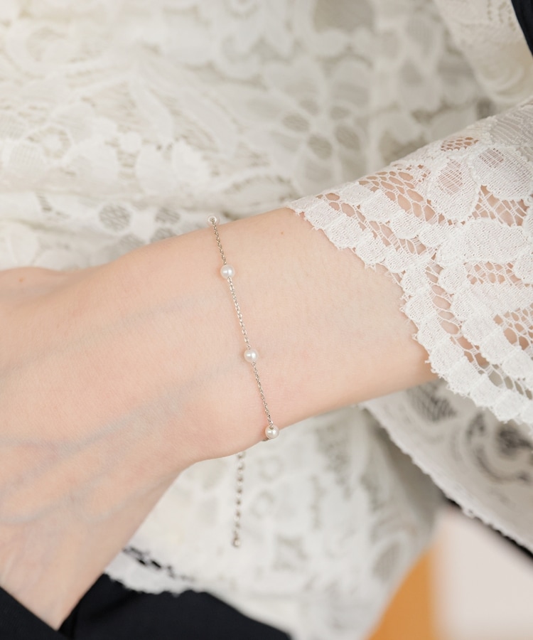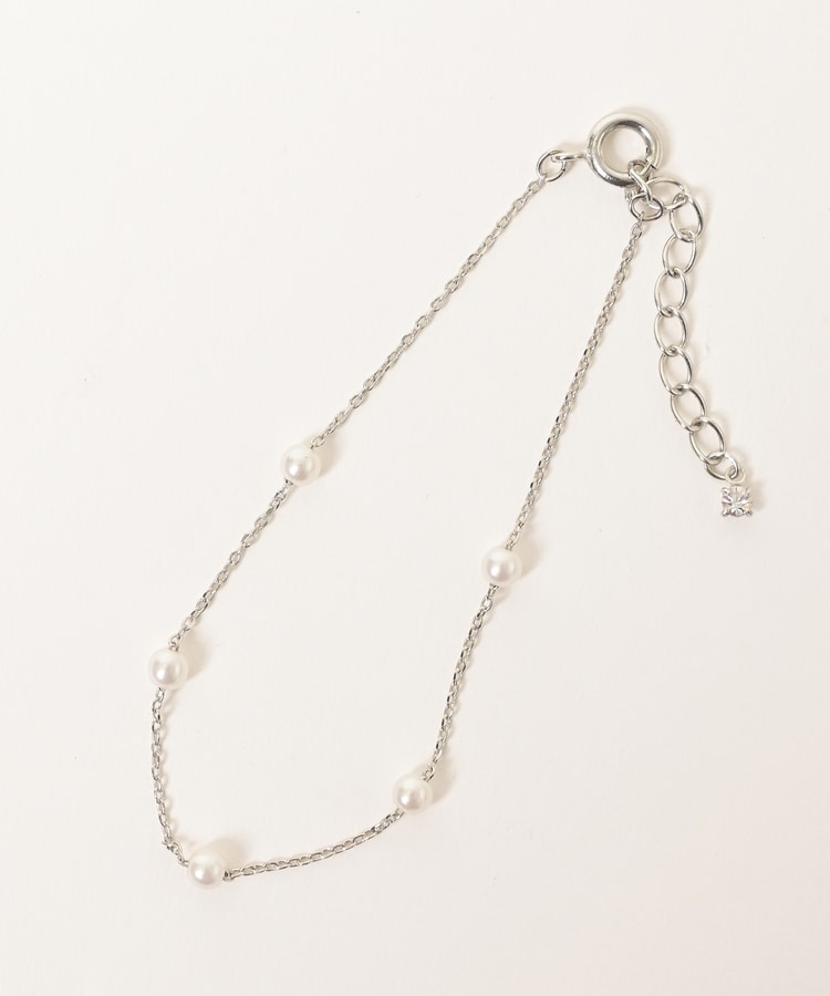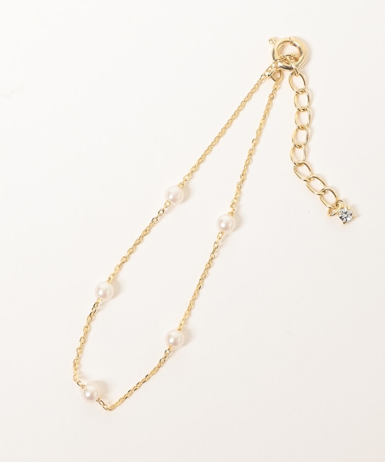 細めチェーンにパール風ビーズを添えた、手首の華奢見せを叶える上品なデザイン。