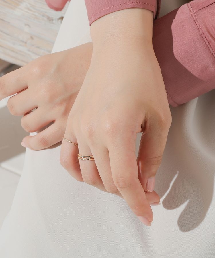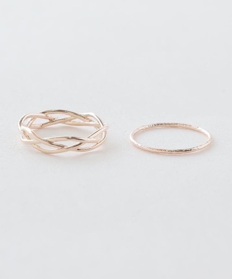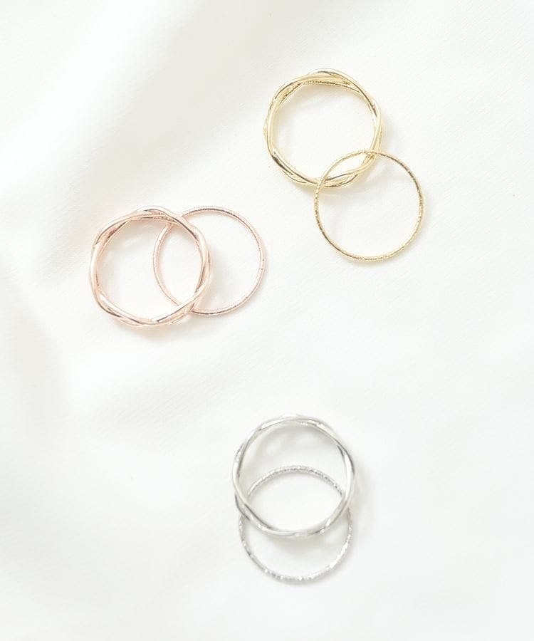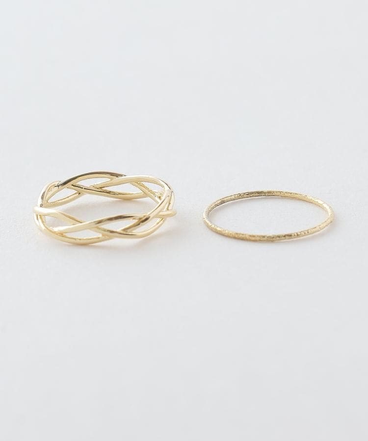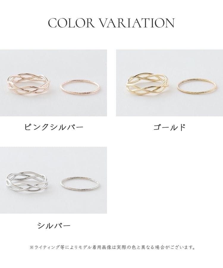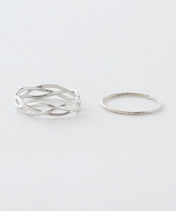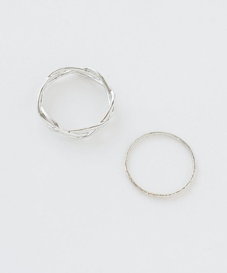 細めのパーツをゆるやかにツイストさせたデザインとシンプルな細ロープ風の、2本セットの9号サイズ。