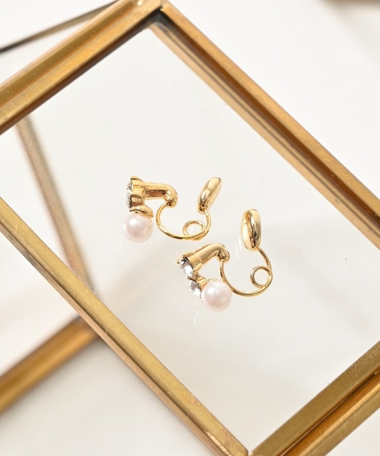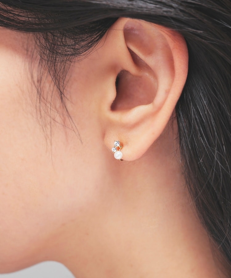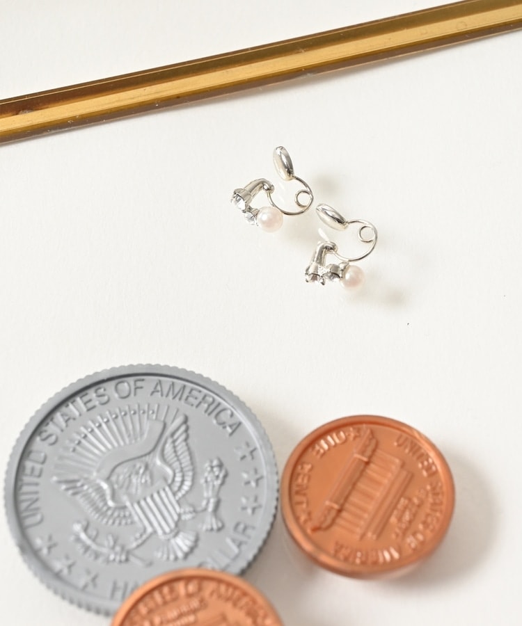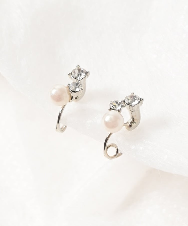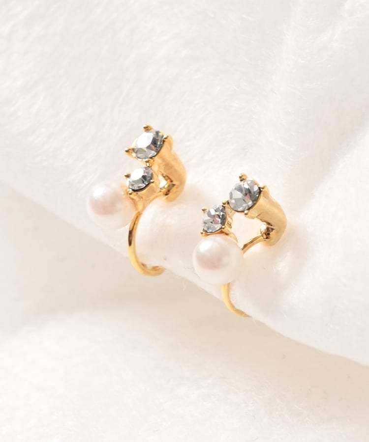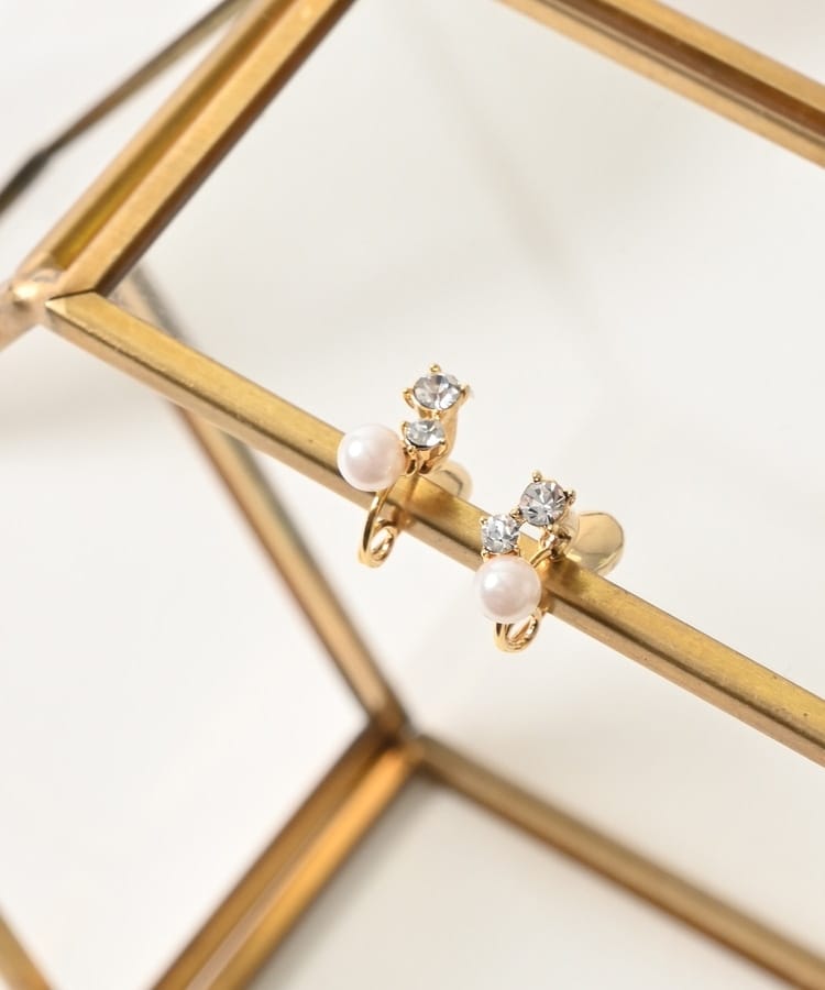 小粒のパールビーズ&ビジューがさりげなく輝く上品なデザイン。