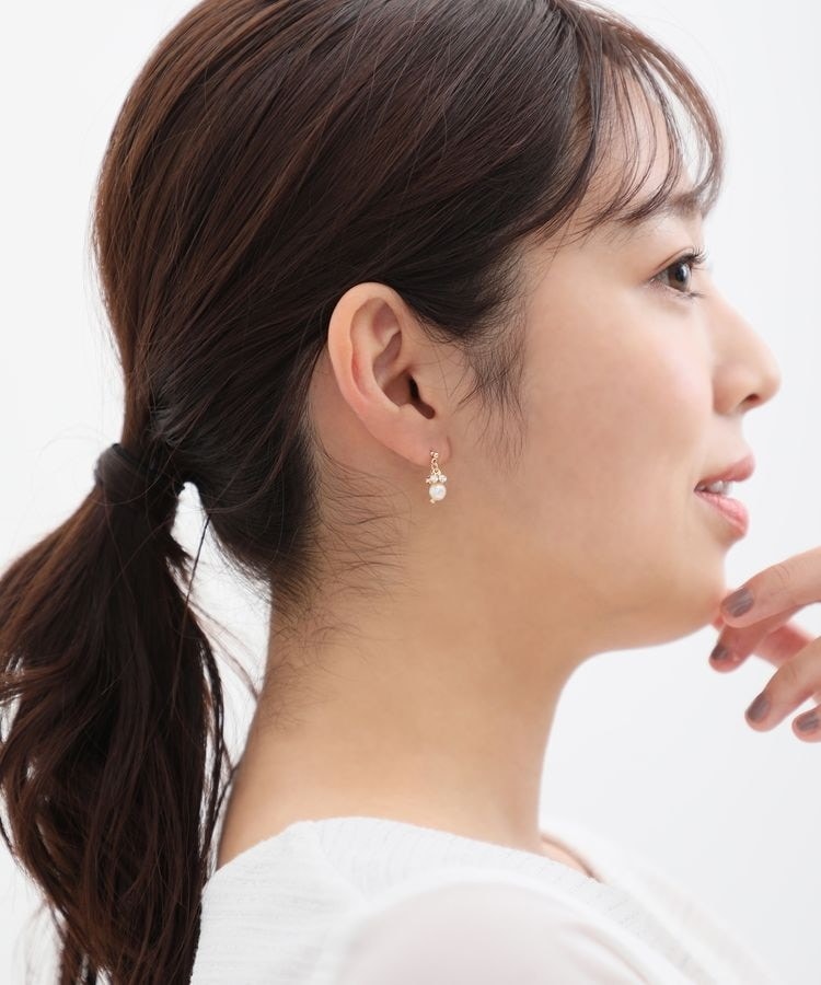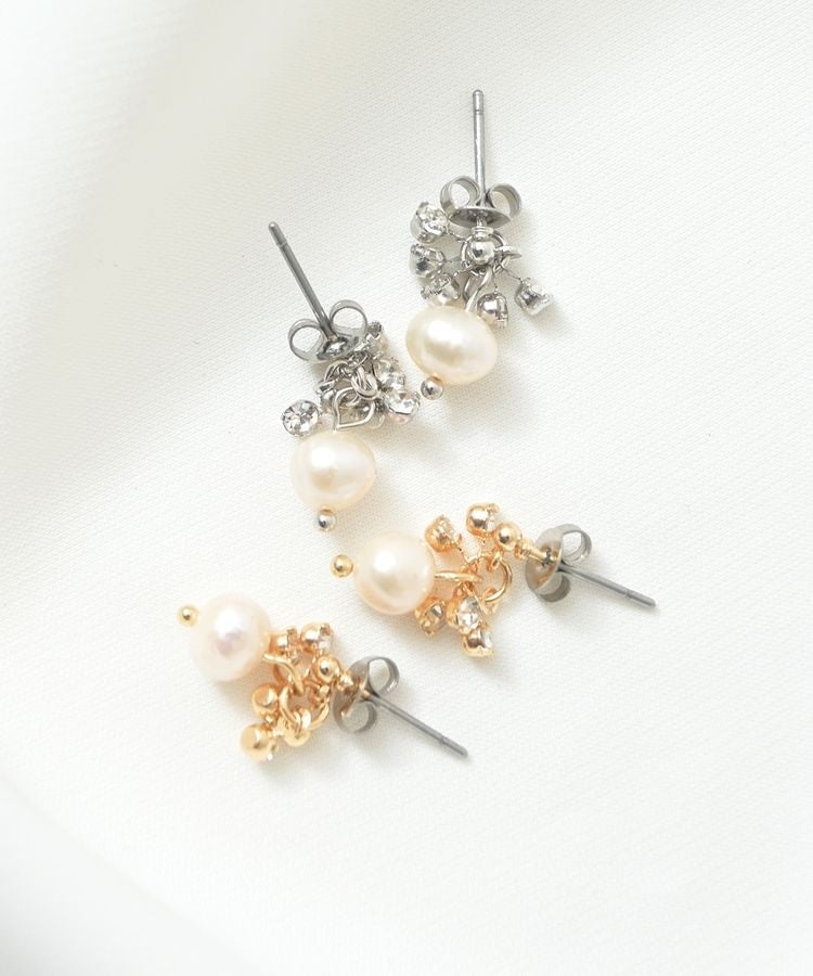 フェイクパールに小粒のビジューを添えた大人可愛いデザイン。