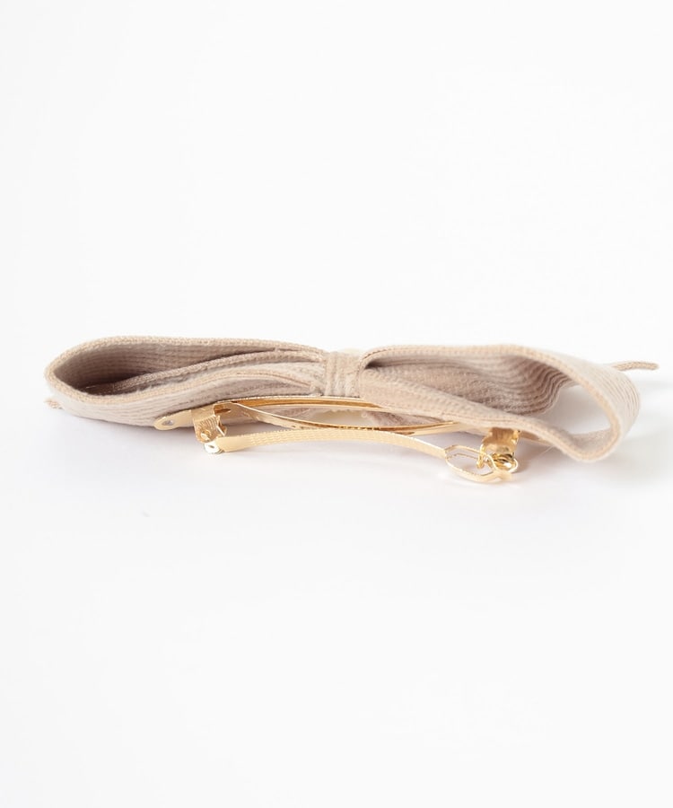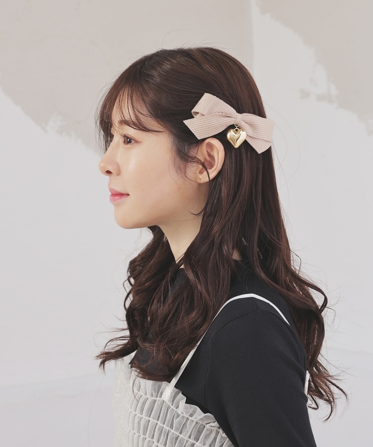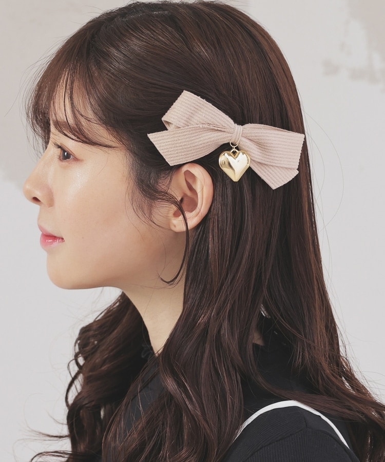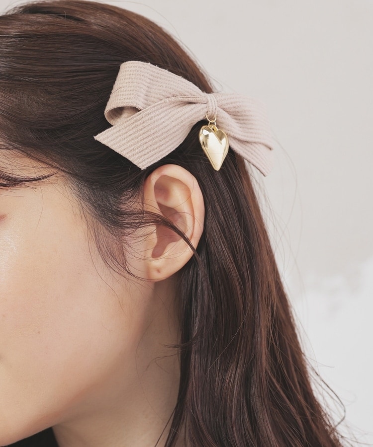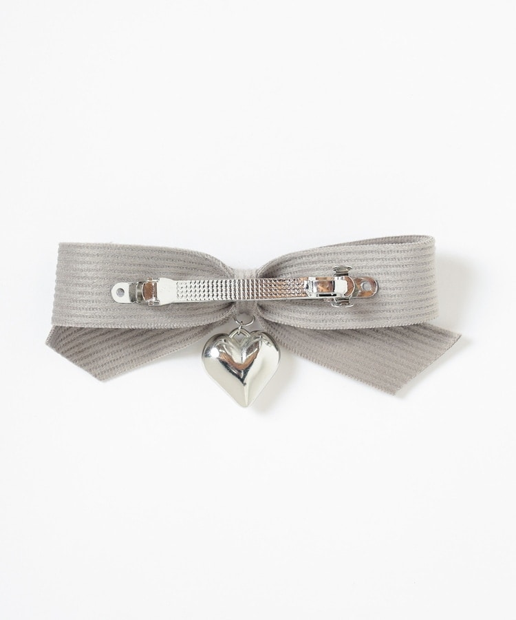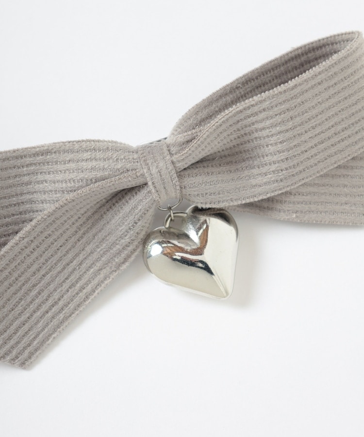 シックなカラーのコーデュロイリボンにメタルカラーのハートモチーフを添えた大人可愛いデザイン。