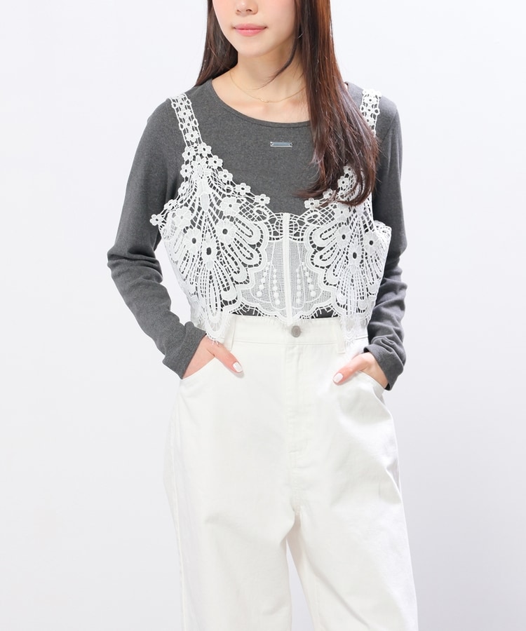 繊細なモチーフレースが目を引くお洒落なデザイン。