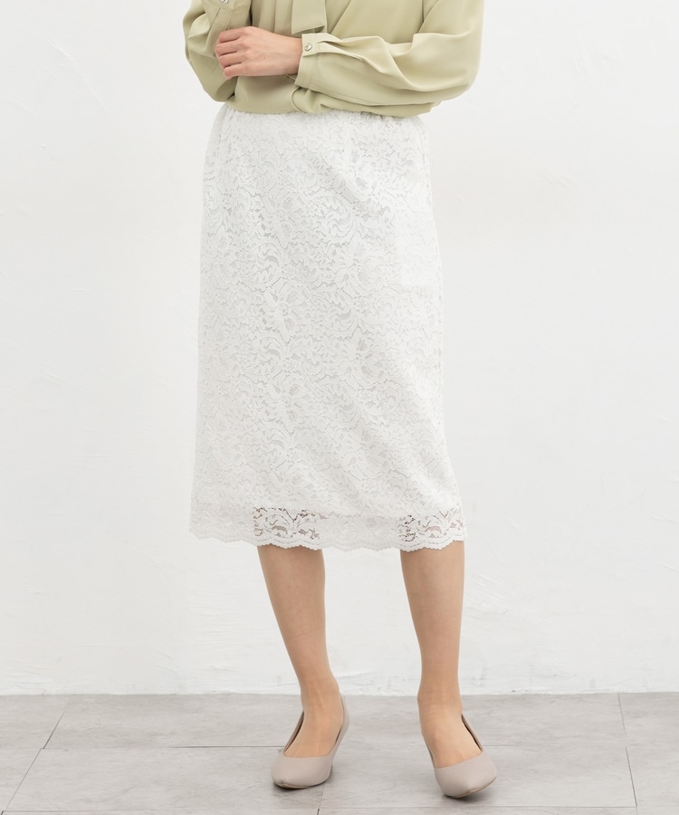 後ろスリット入りで歩きやすく、ウエストゴムでストレスフリーなはき心地。
