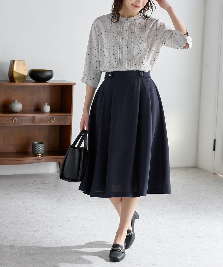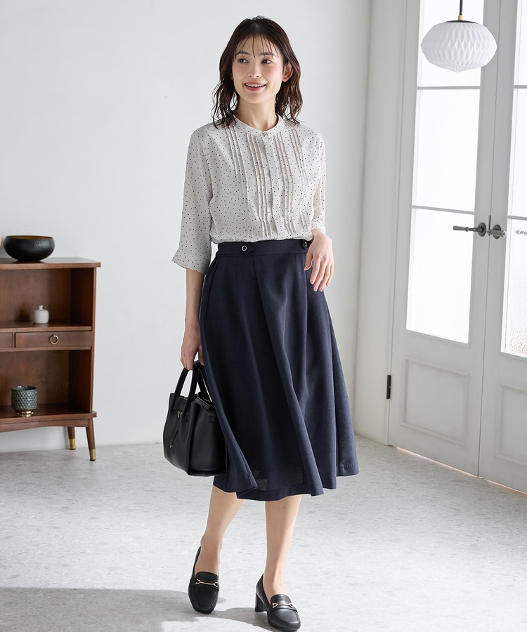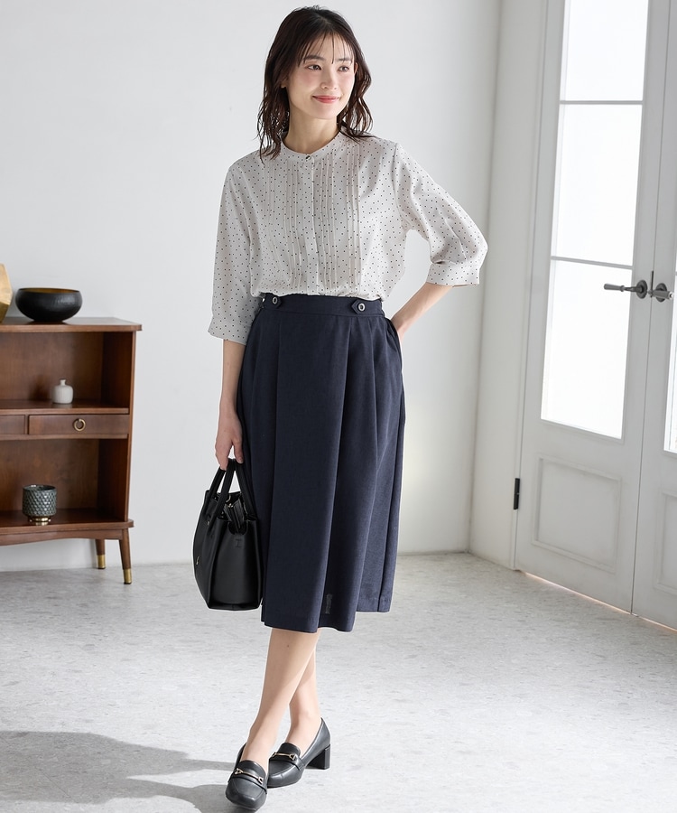 ブラウスやコンパクトトップスと合わせたきれいめスタイルに大活躍。