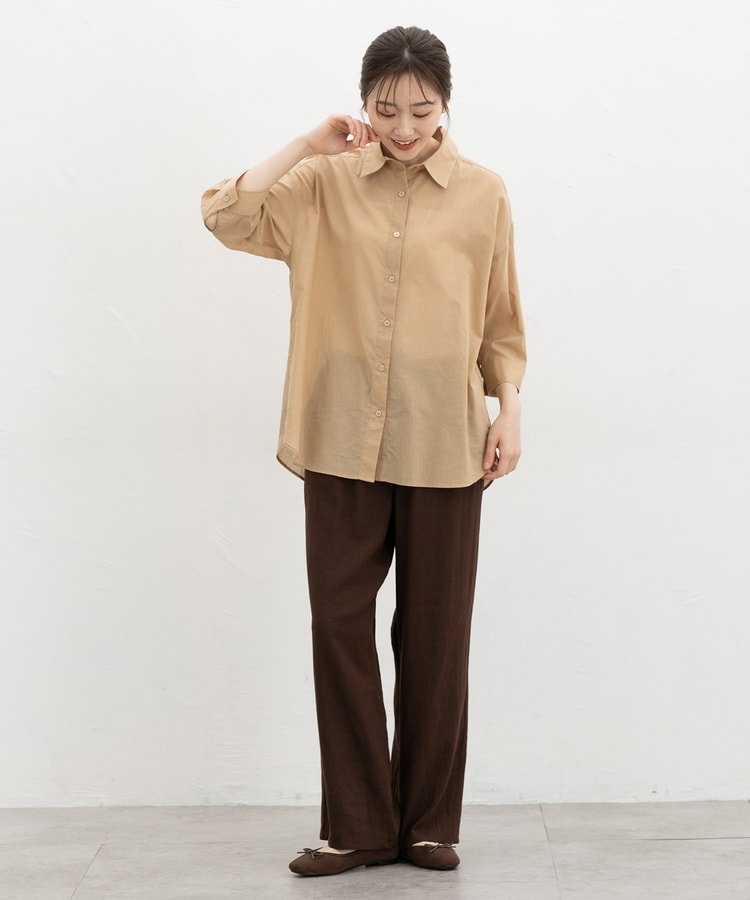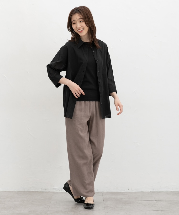 ゆったり幅とヒップまですっぽり隠れる丈感で体型もカバーし、ストレスフリーな着心地。