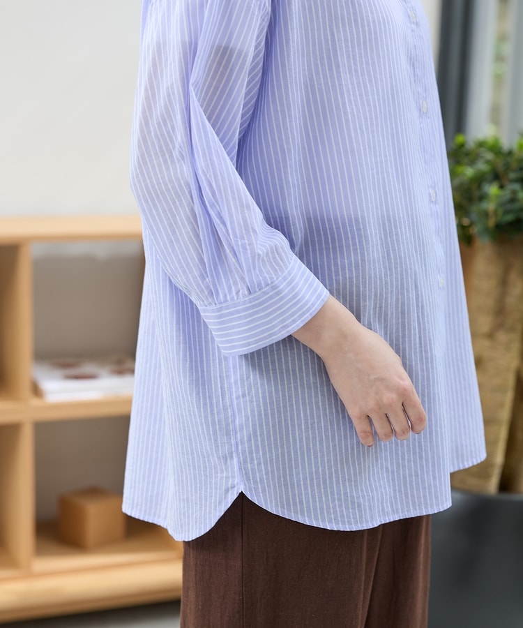 やや透け感があり、薄手で柔らかく着心地のよい、綿100%ボイル素材。