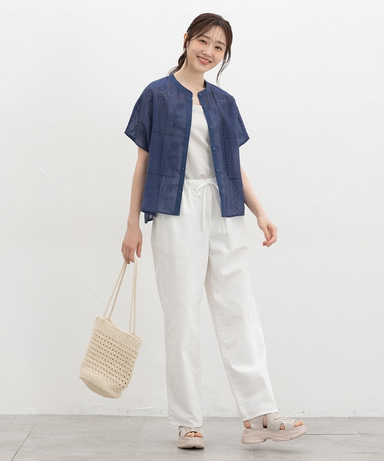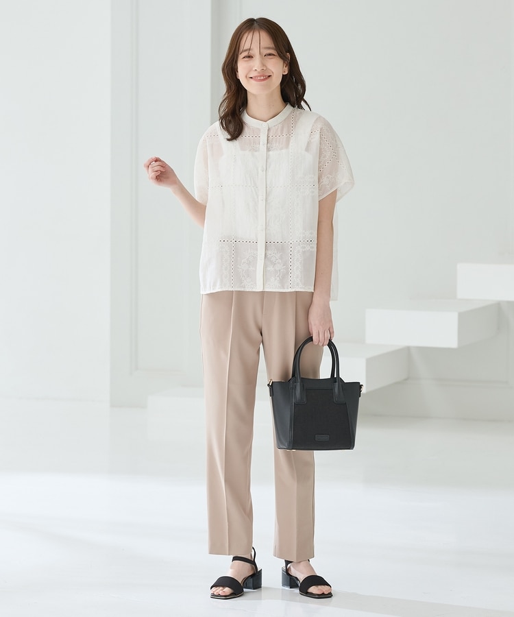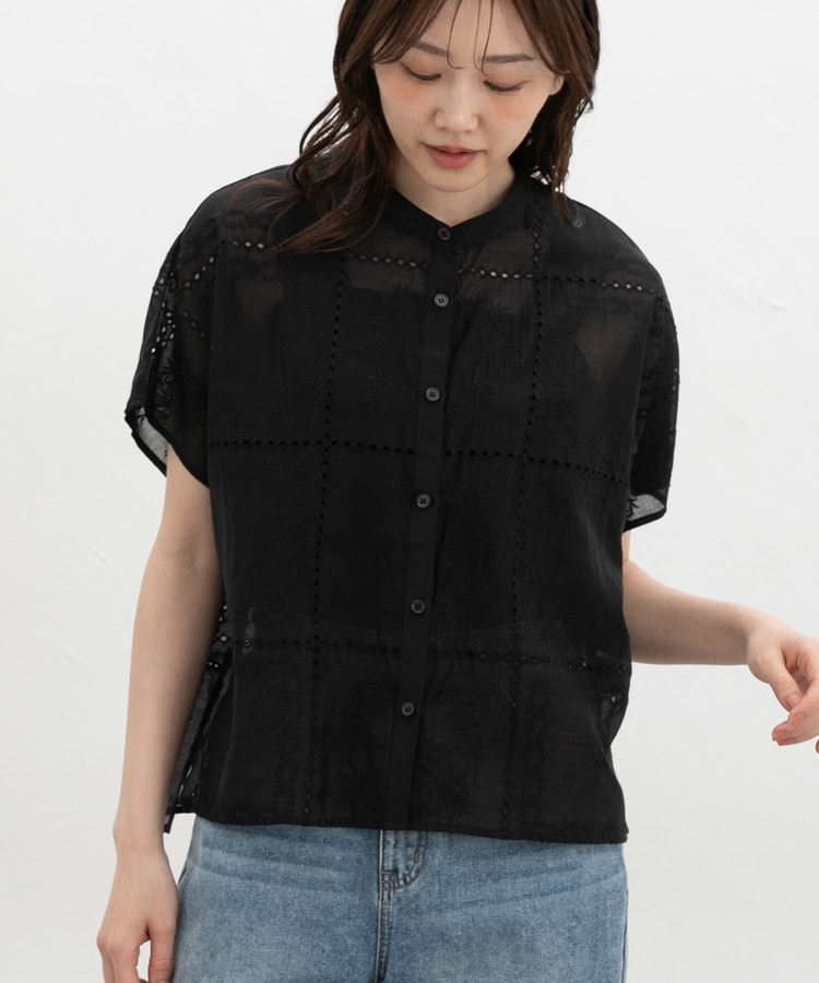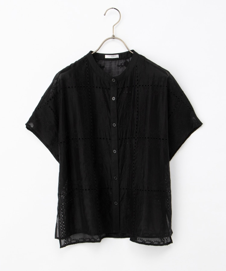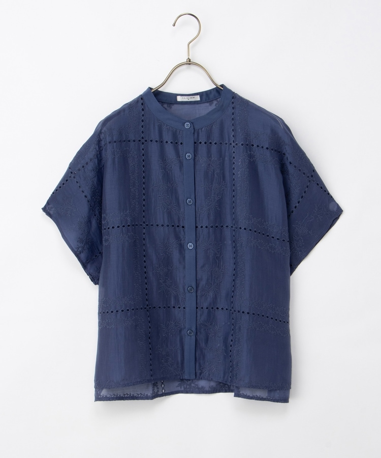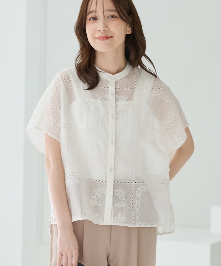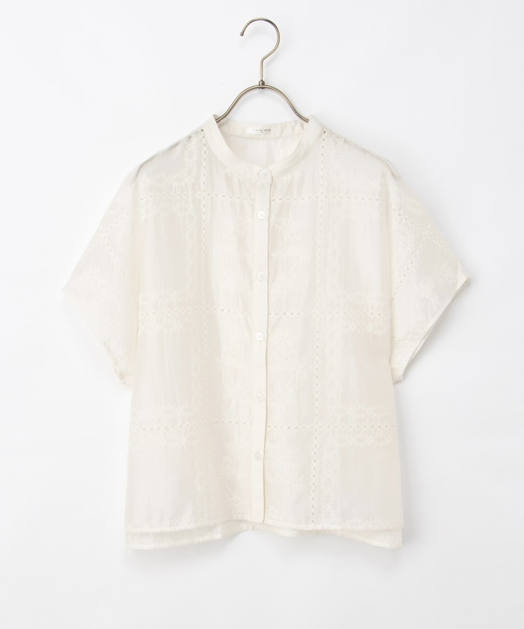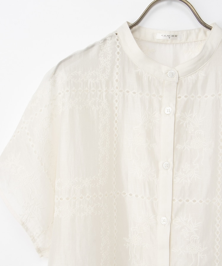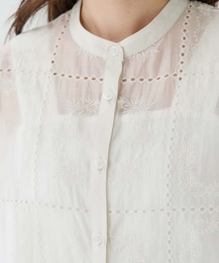 刺繍バンドカラーブラウス