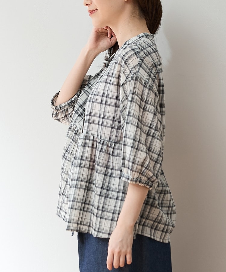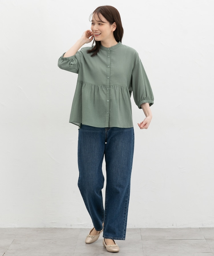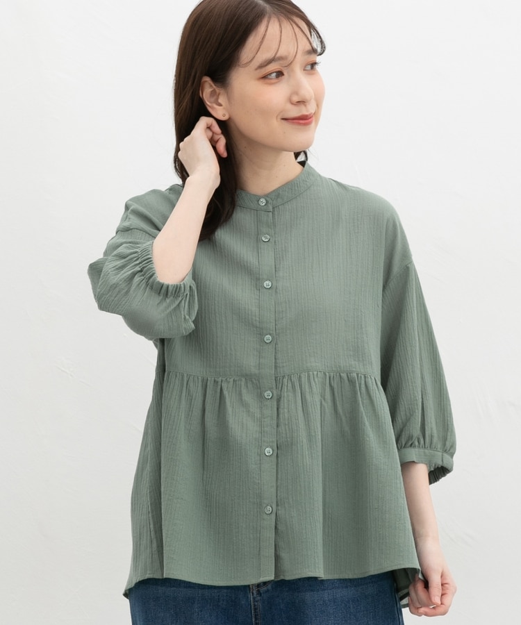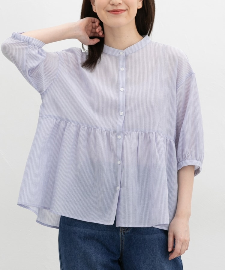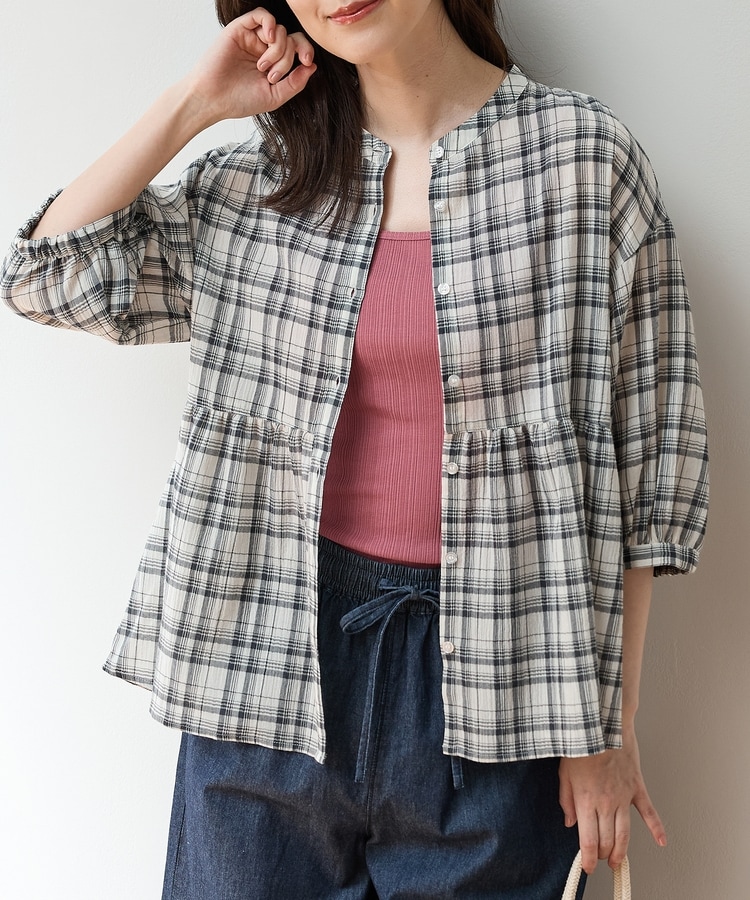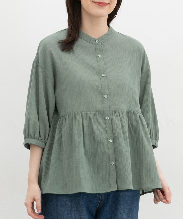 暑い季節もさらっと着られる、見た目も着心地もさわやかな綿混楊柳素材。