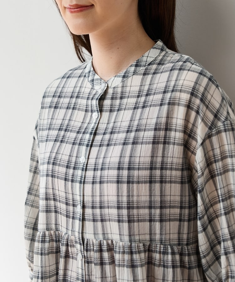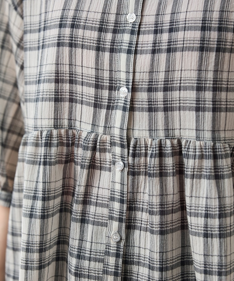 たっぷりギャザーのウエスト切り替えとふんわり袖が大人可愛いデザイン。