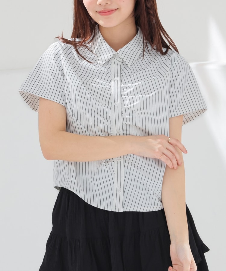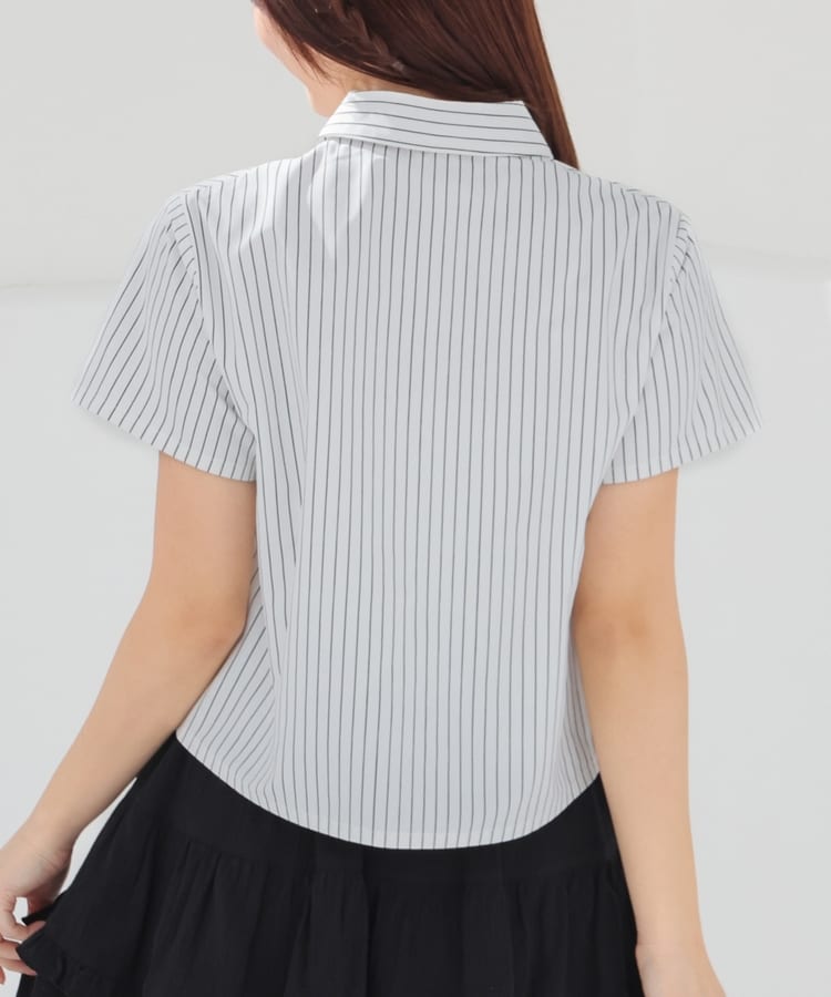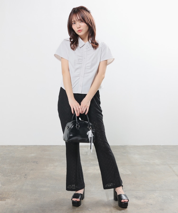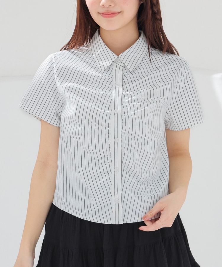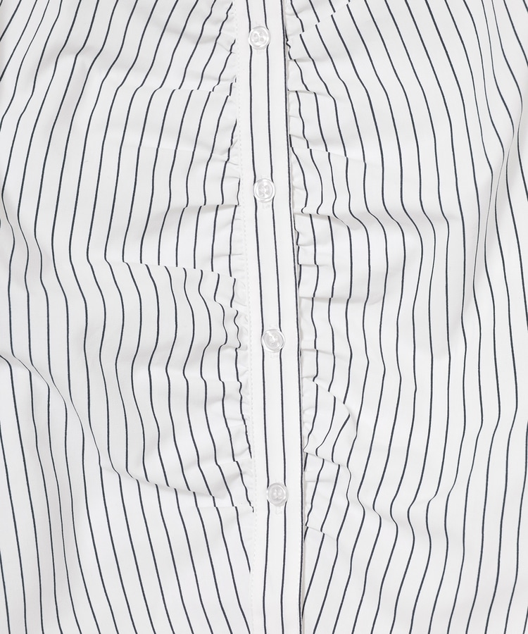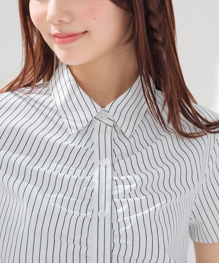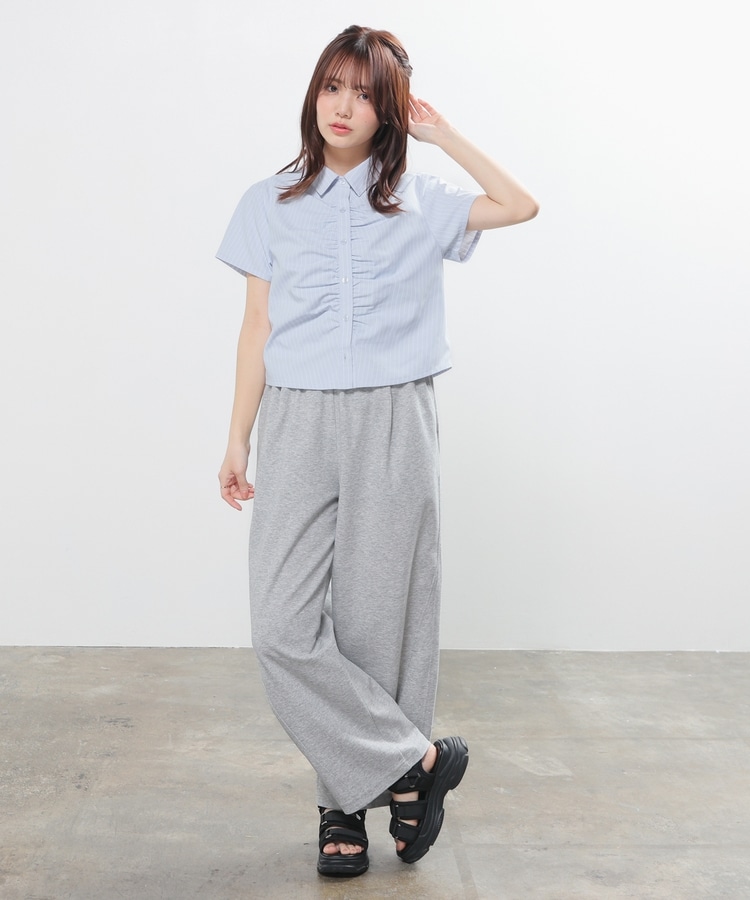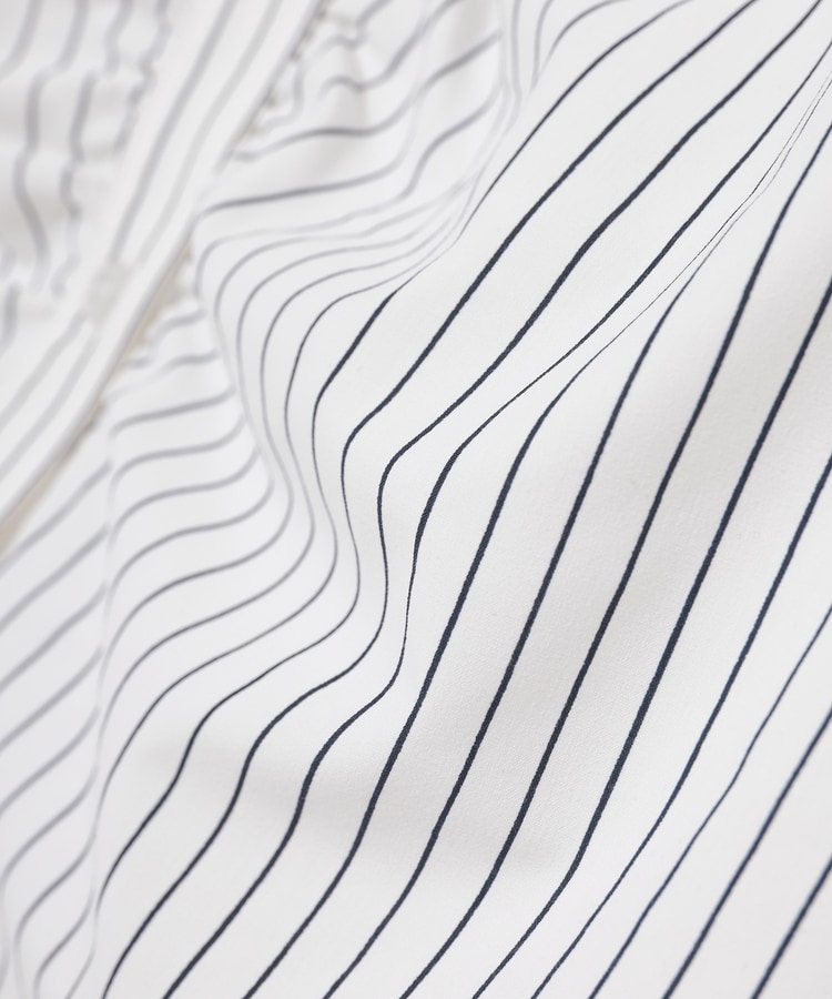 ベーシックなレギュラーシャツのボタン部分にギャザーを寄せた、さりげなくお洒落なデザイン。