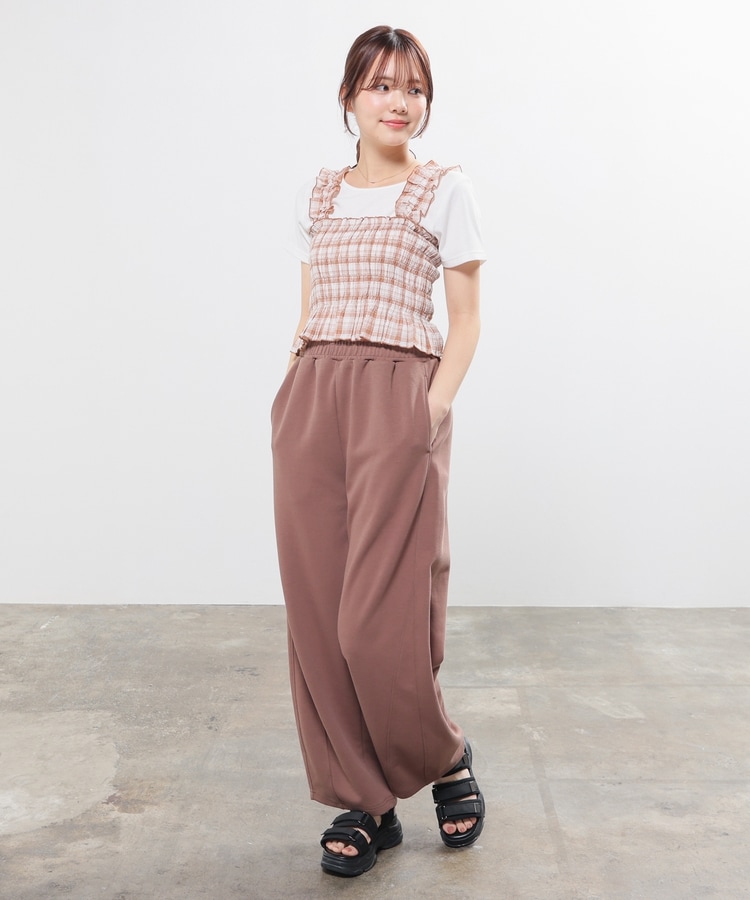 トレンドのスウェットパンツと合わせてラフに着こなすのがおすすめ。