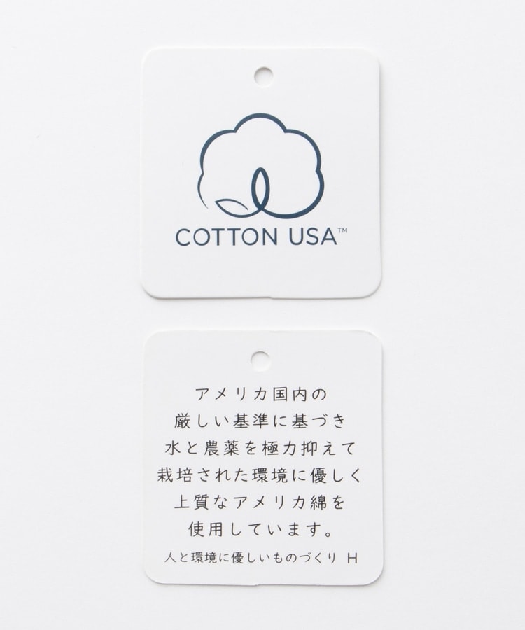 アメリカ国内の厳しい基準に基づき、水と農薬を極力抑えて栽培された、環境に優しく着心地もよいUSAコットン100%素材。