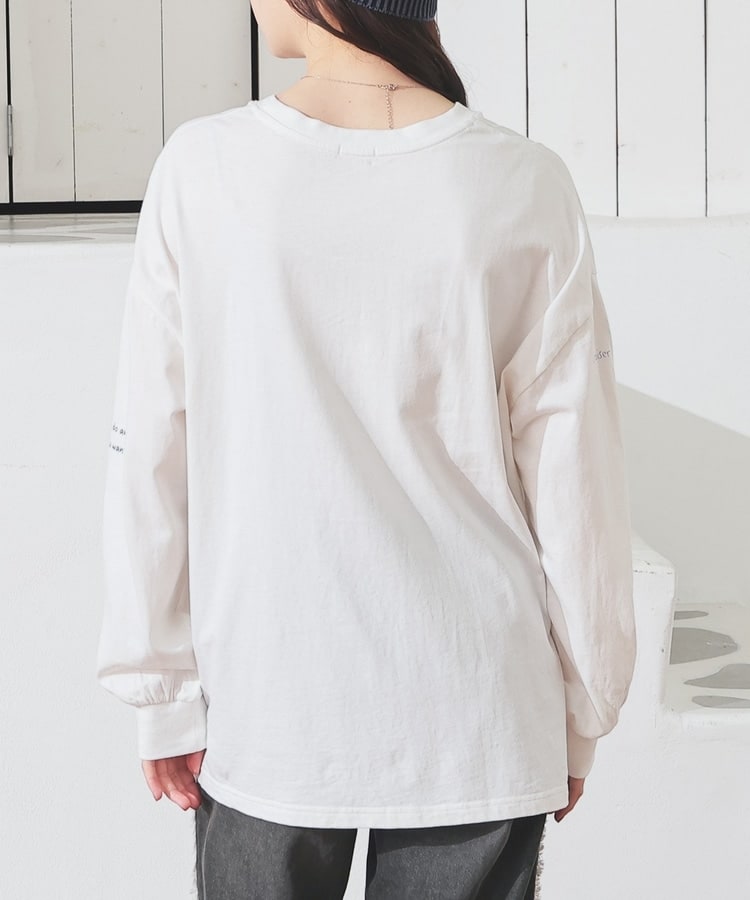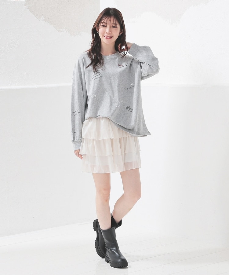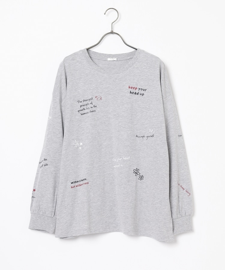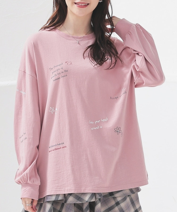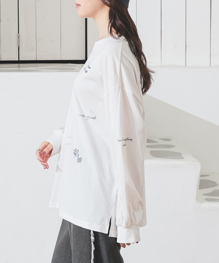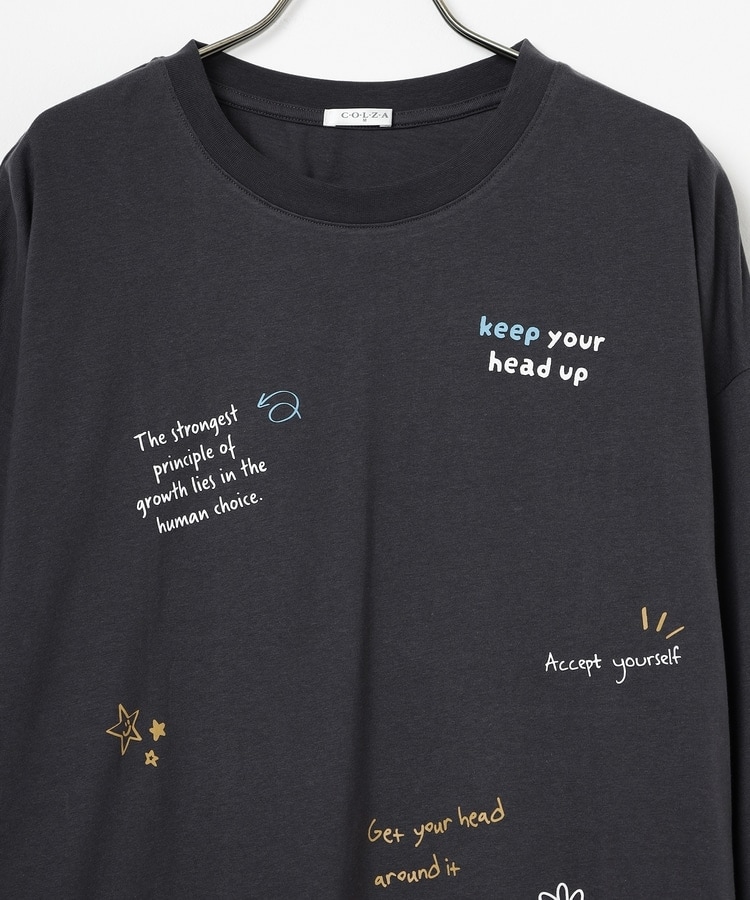 フロント&袖にちりばめた落書き風のメッセージやモチーフのプリントがPOPなデザイン。