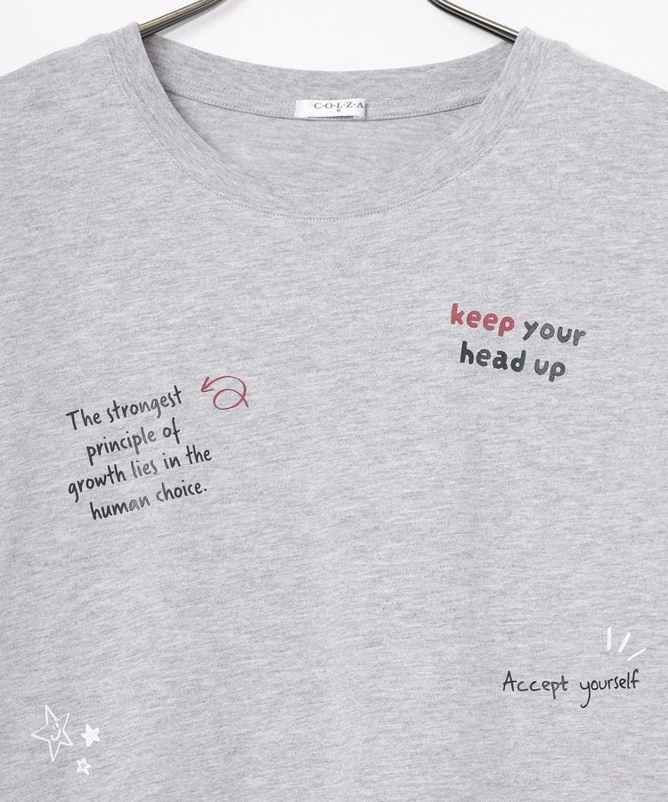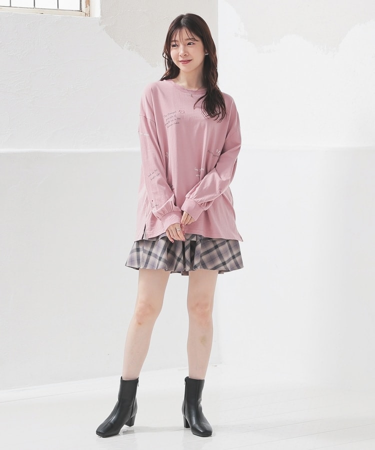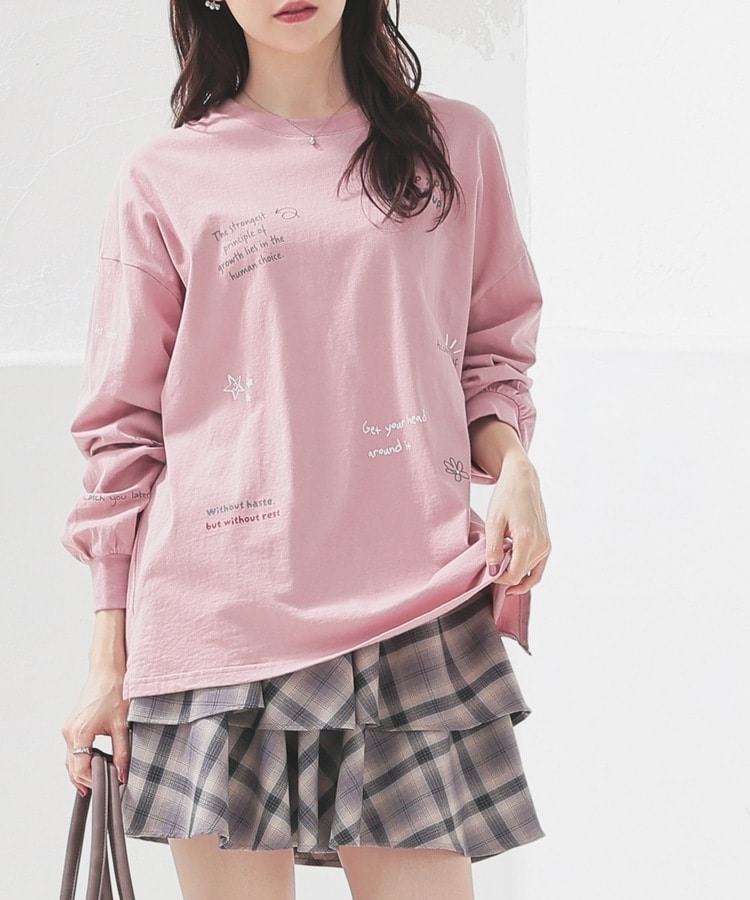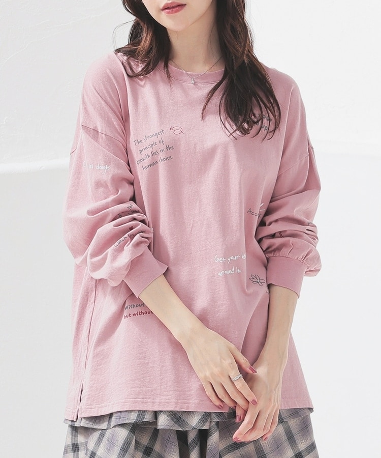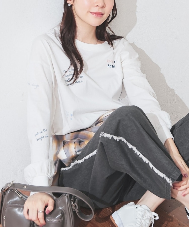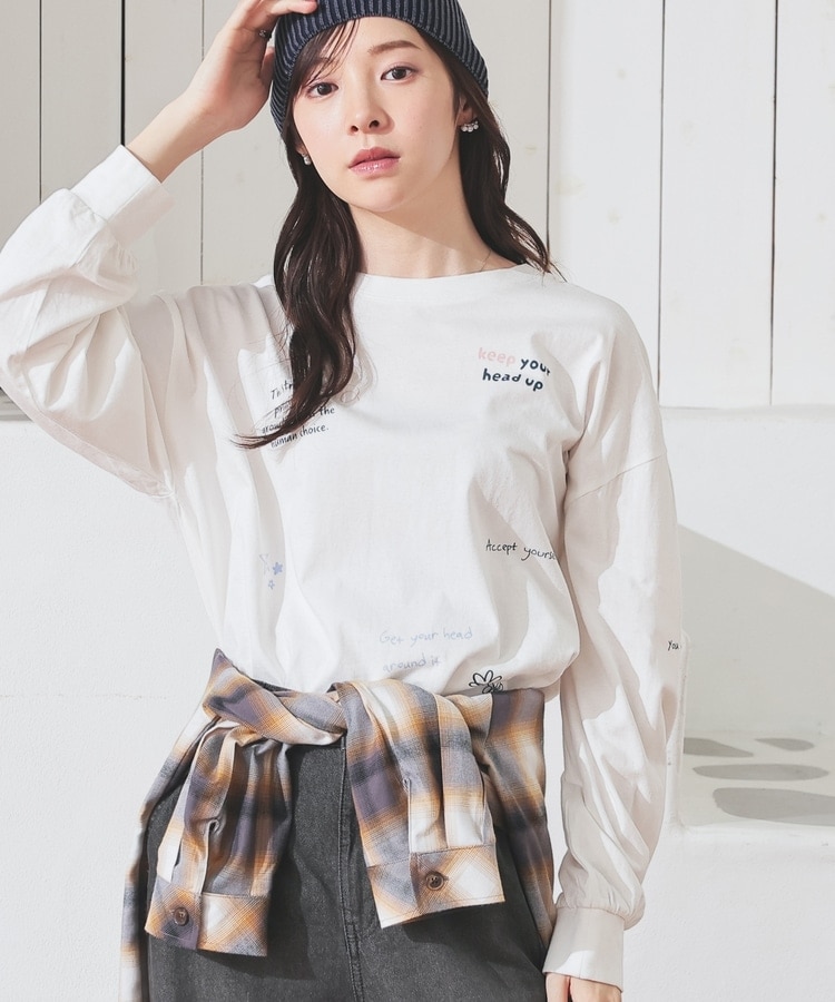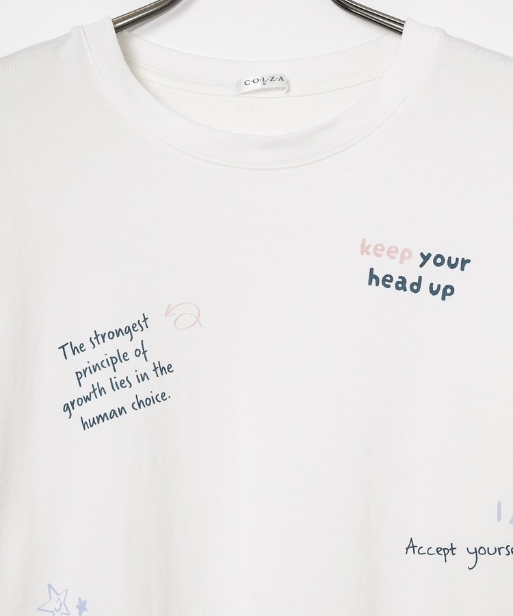 フロント&袖にちりばめた落書き風のメッセージやモチーフのプリントがPOPなデザイン。