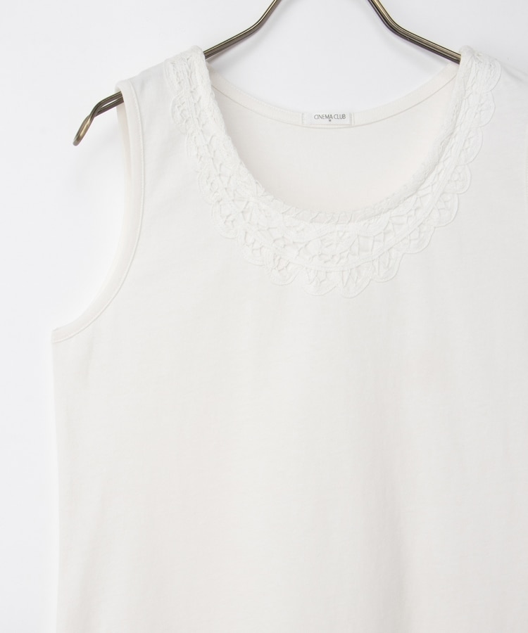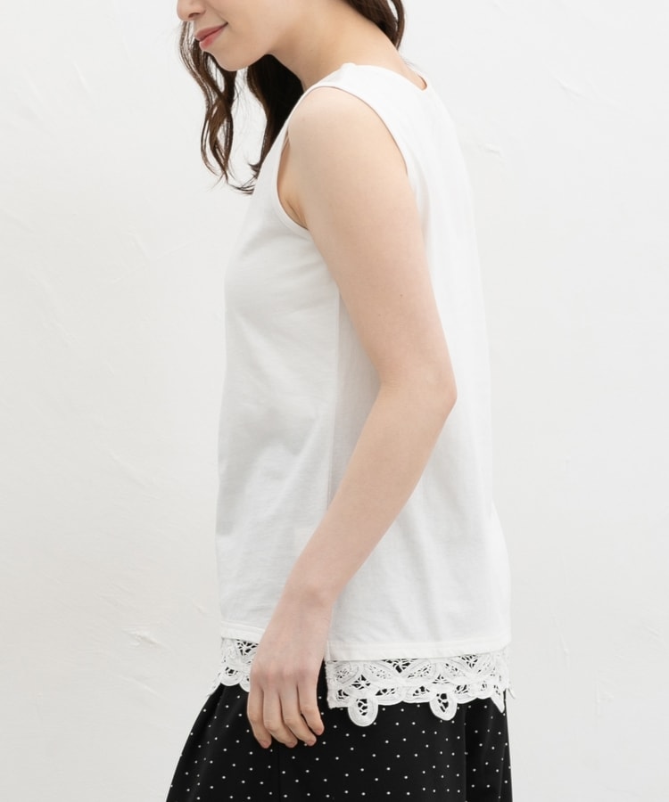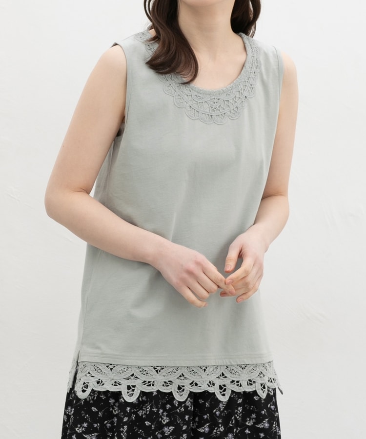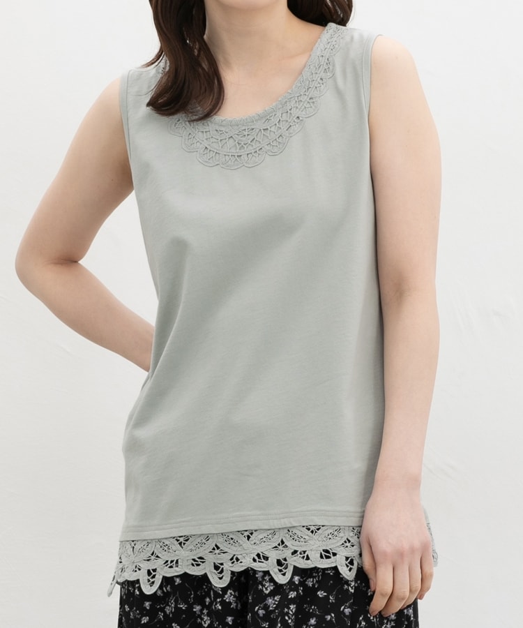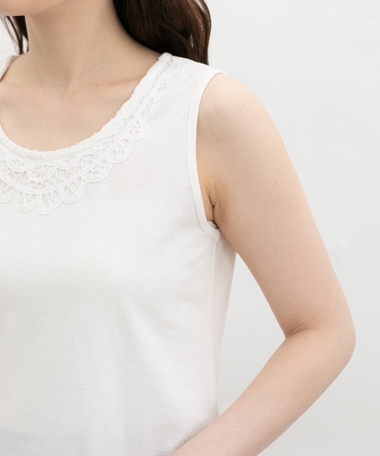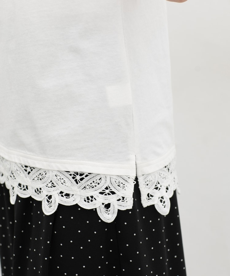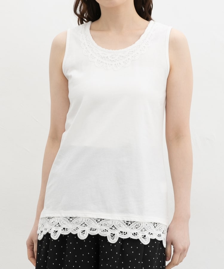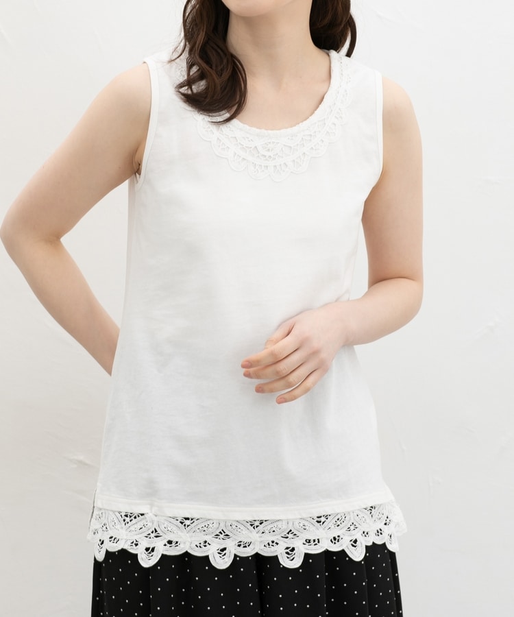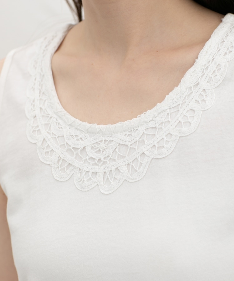 胸元と裾のナチュラルなバテンレースがフェミニンなデザイン。