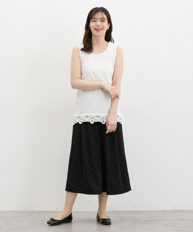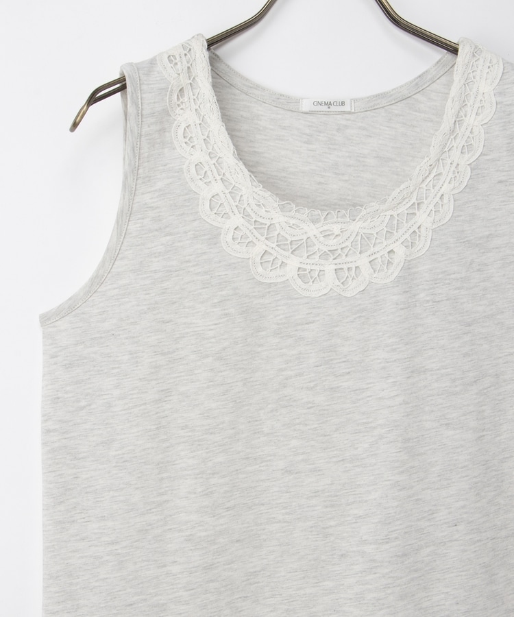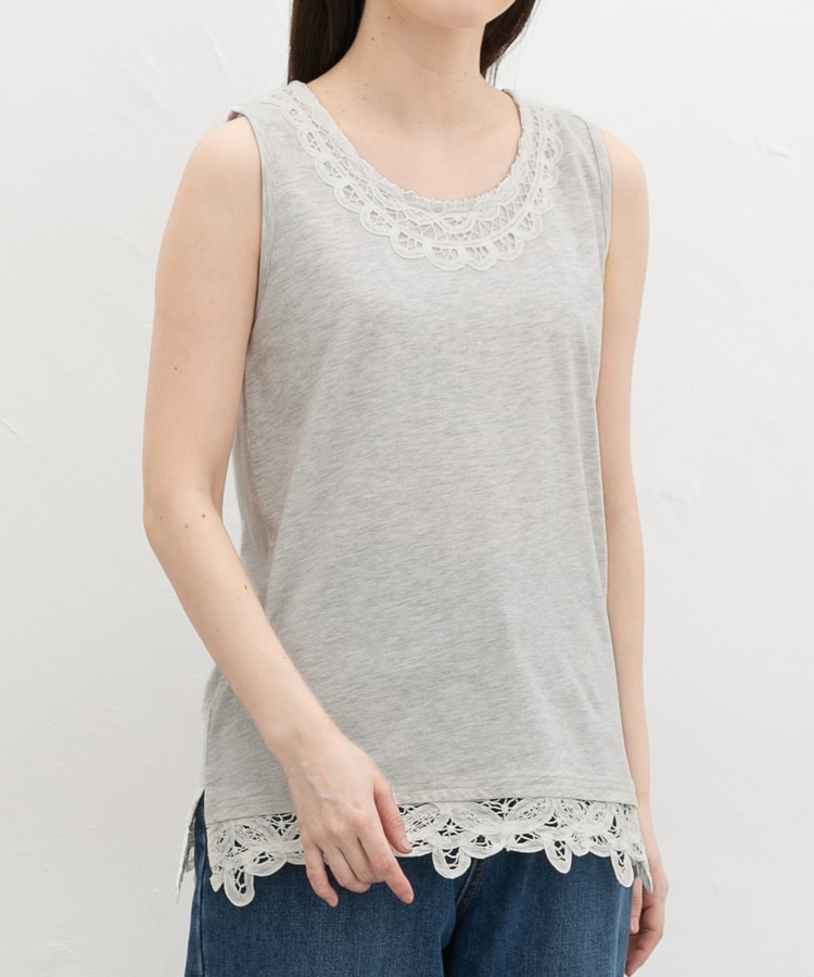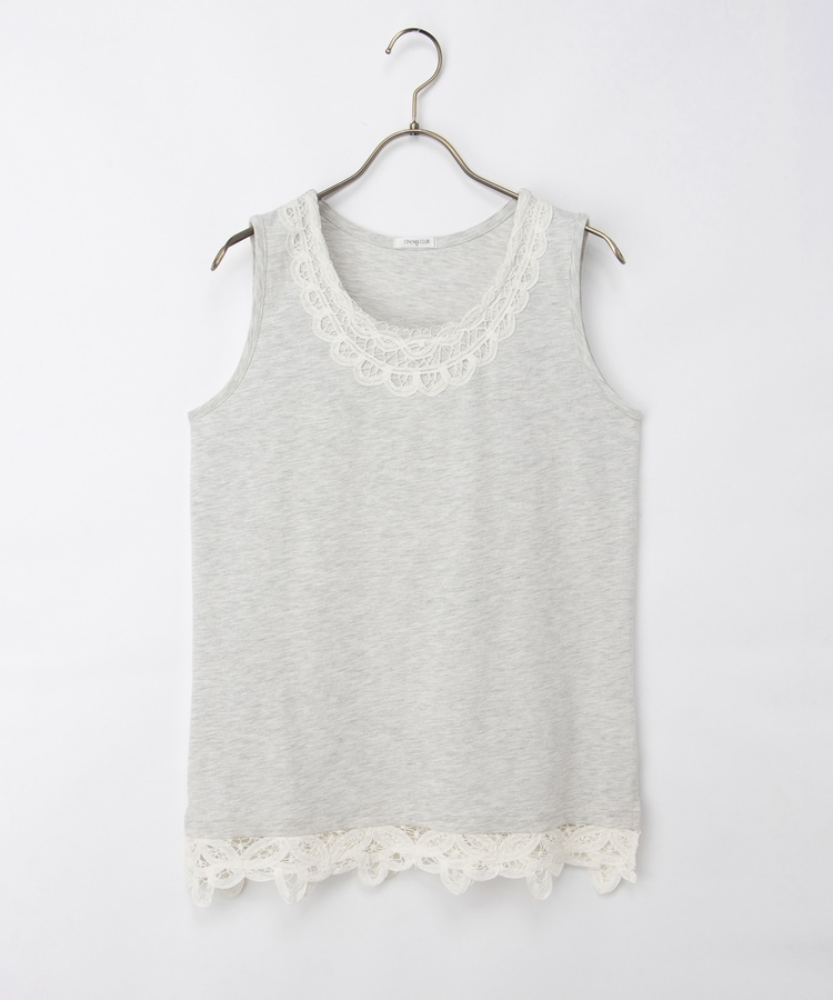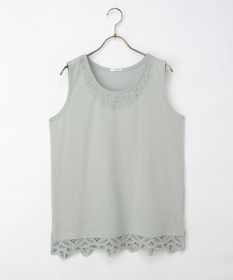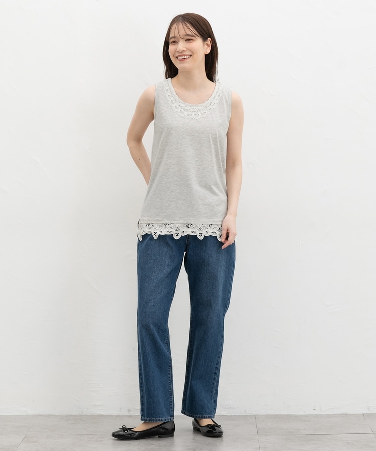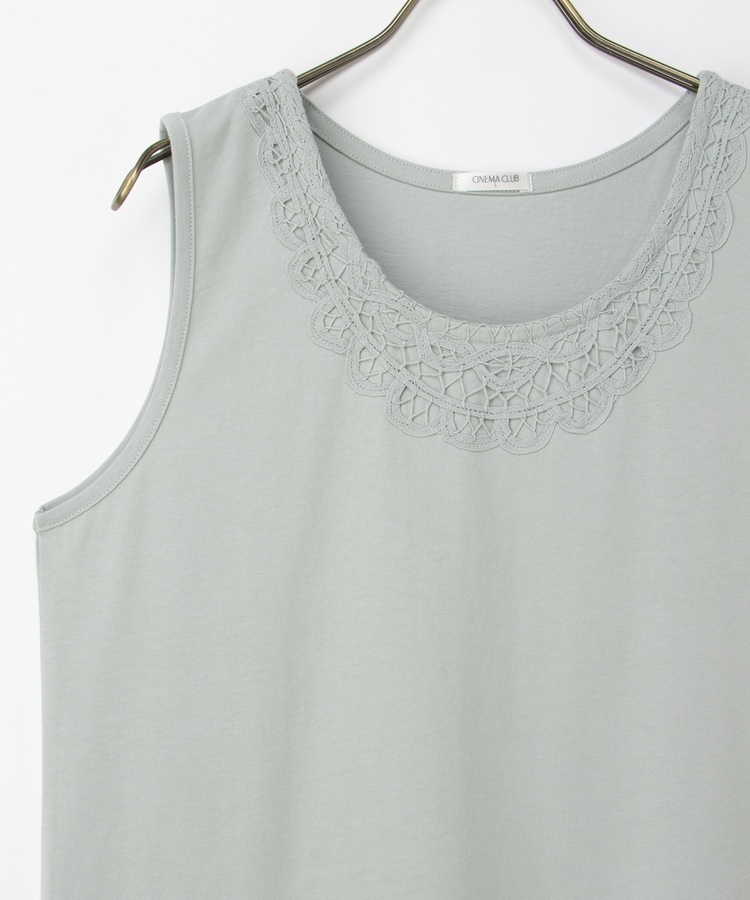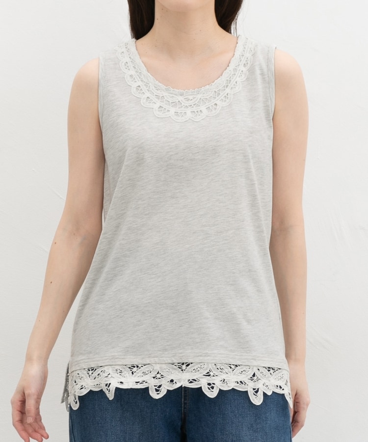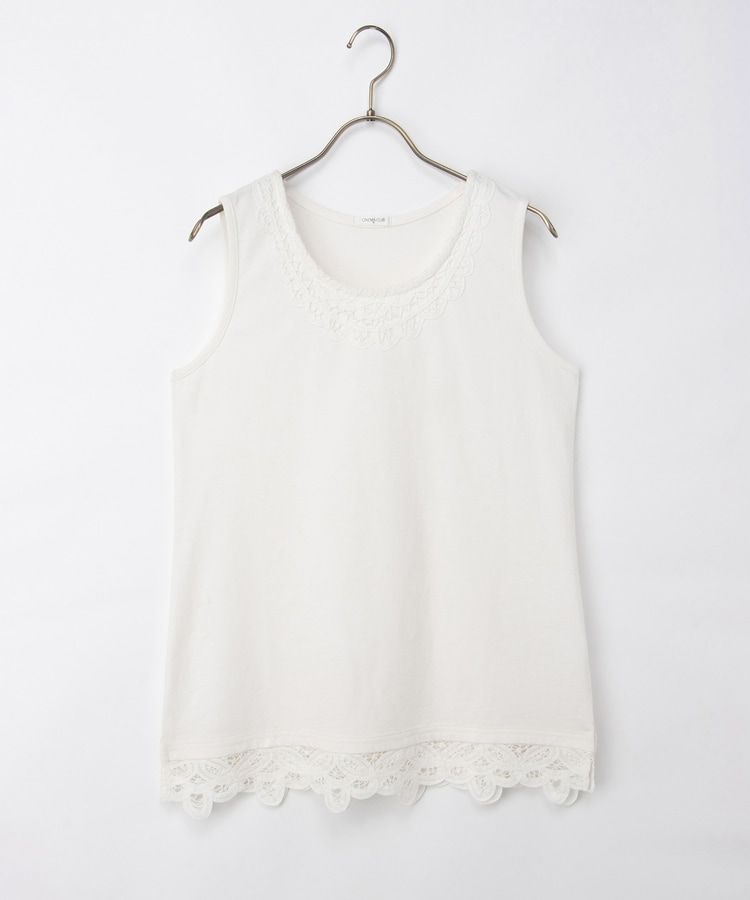 胸元と裾のナチュラルなバテンレースがフェミニンなデザイン。