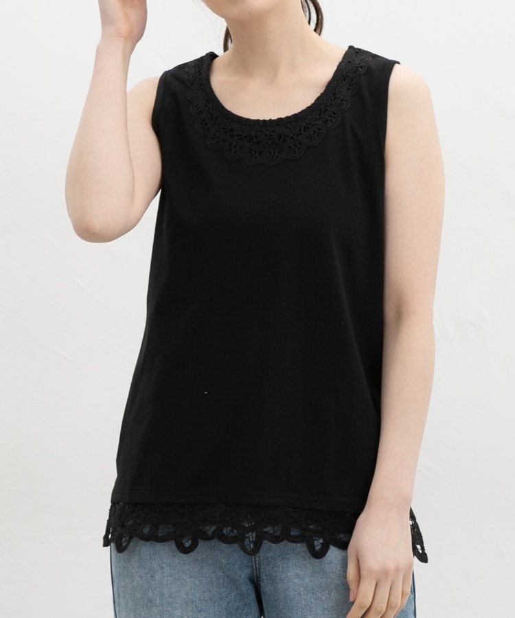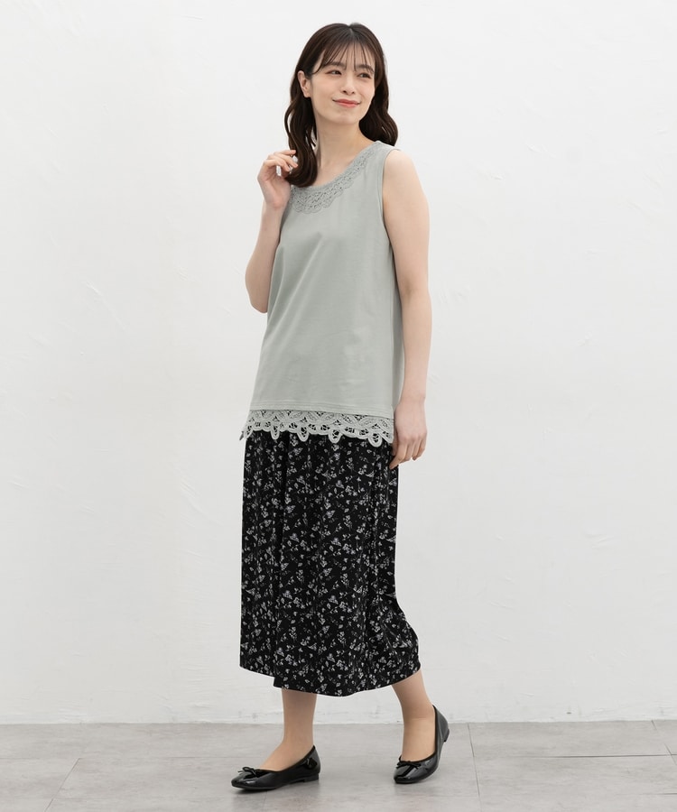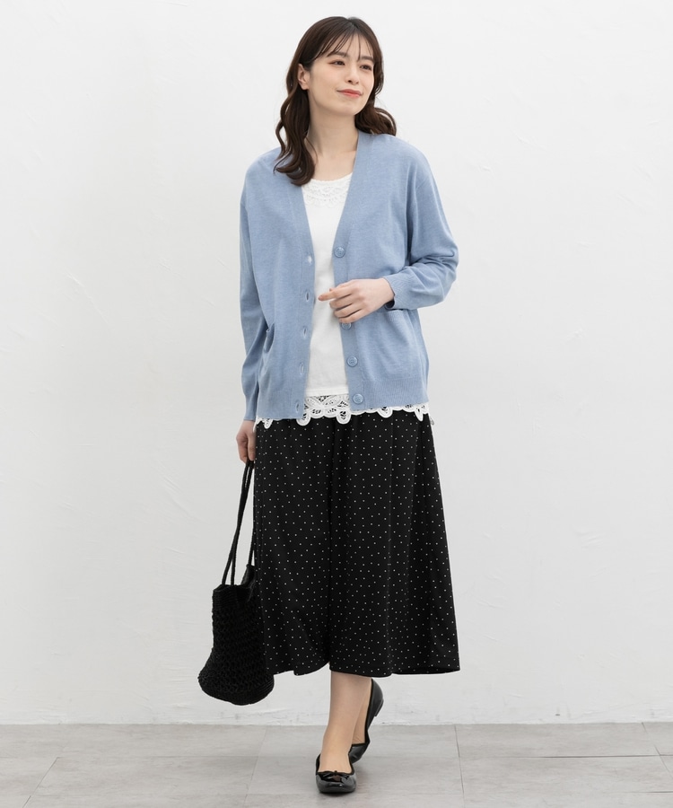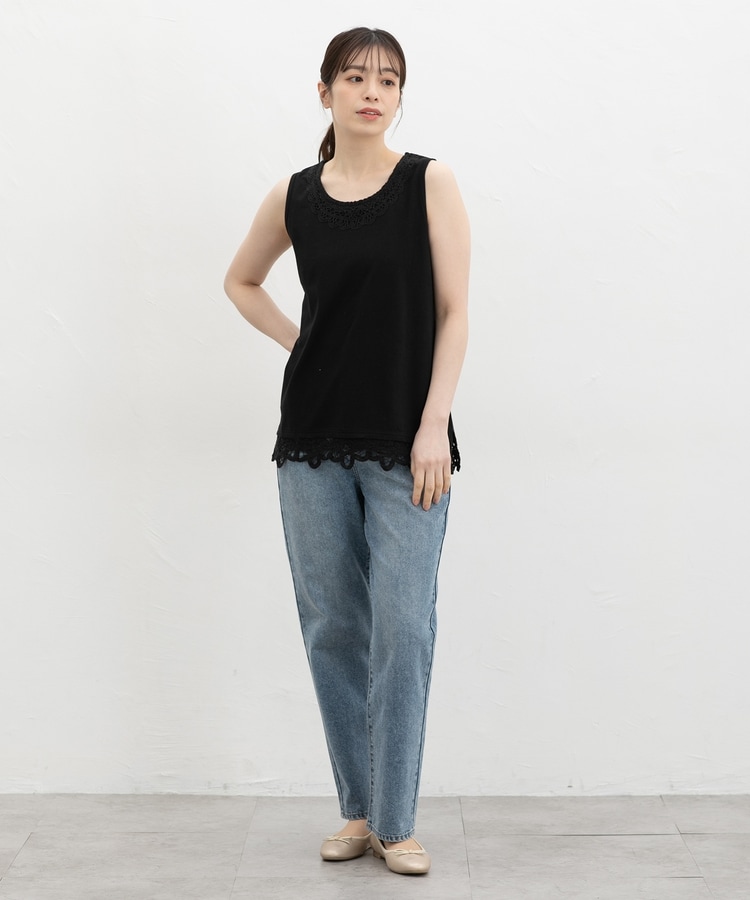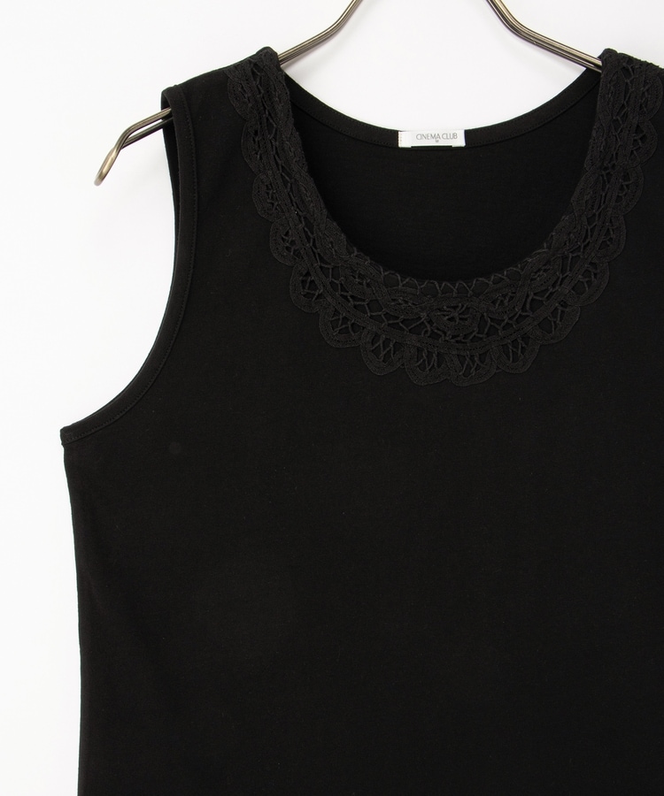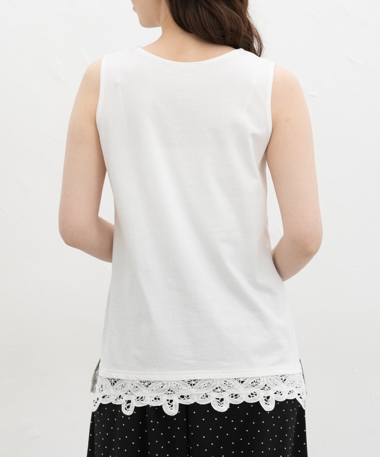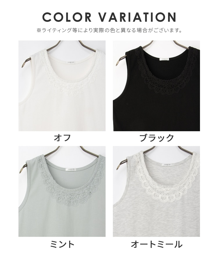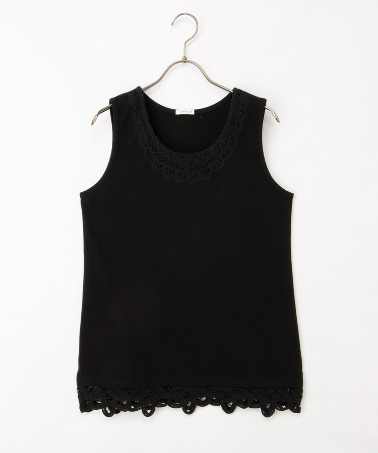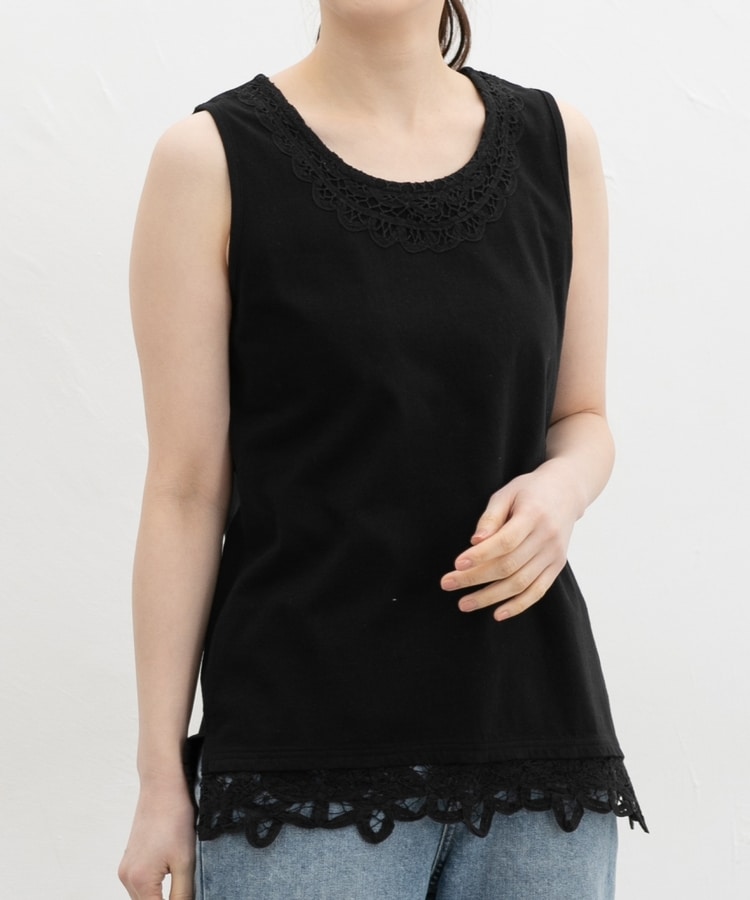 胸元と裾のナチュラルなバテンレースがフェミニンなデザイン。