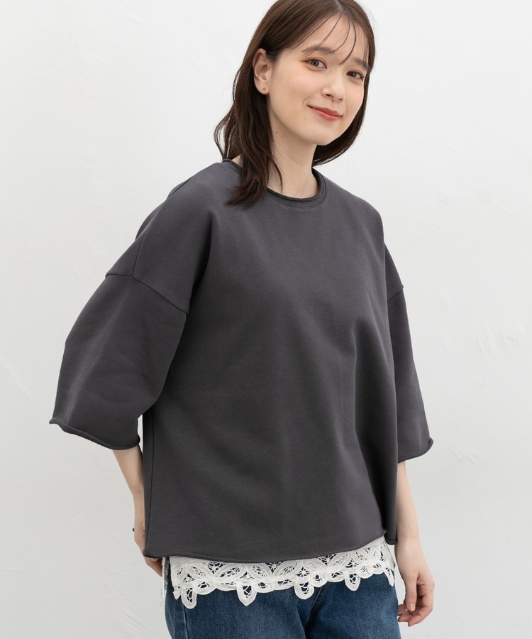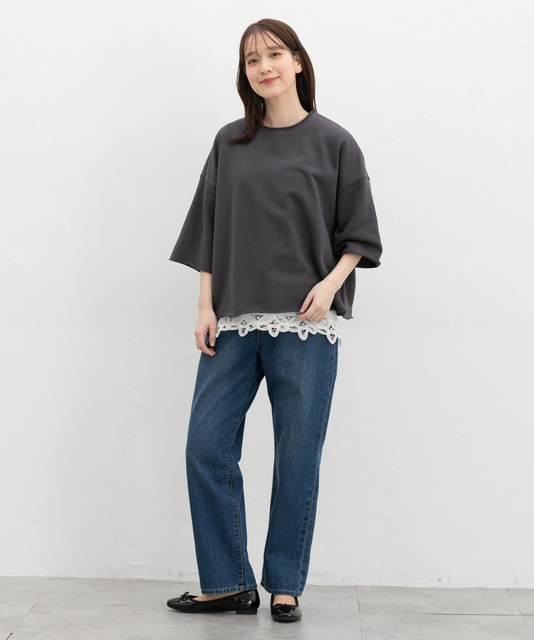 Tシャツやスウェットの裾からレースを見せるコーディネートがおすすめ。