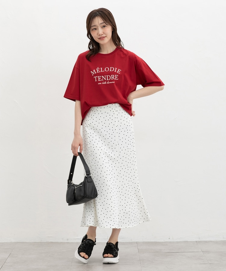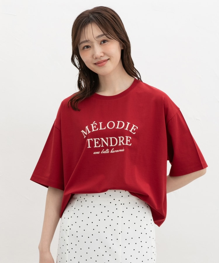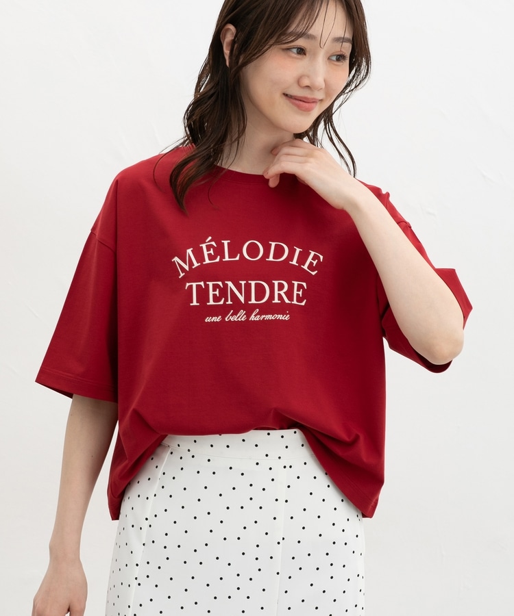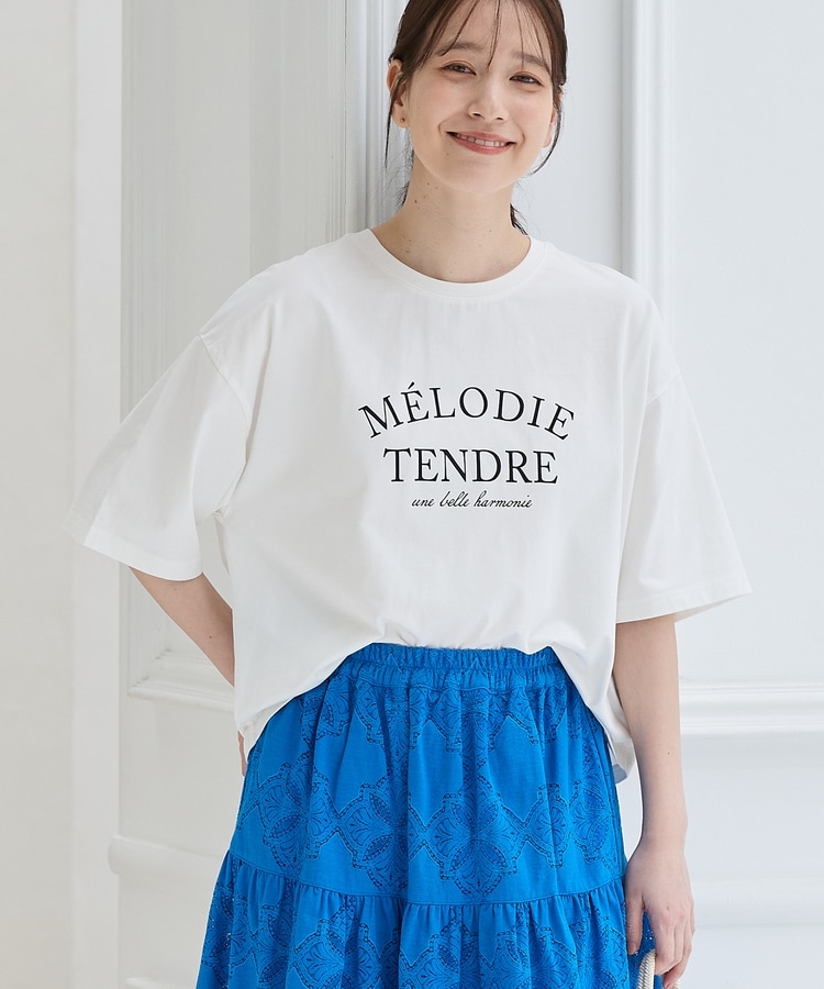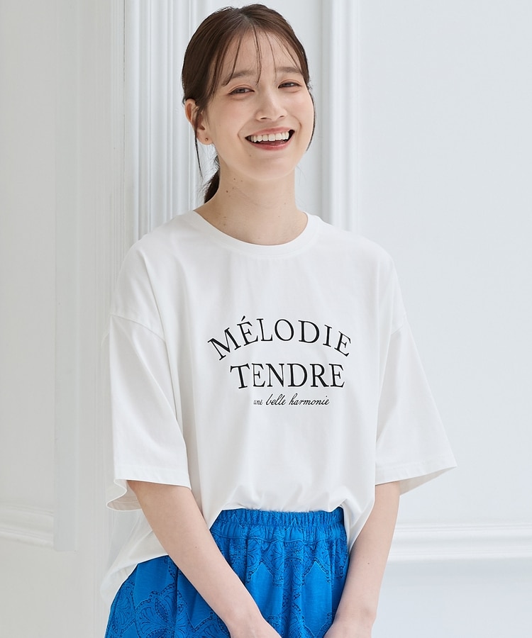 おしゃれフォントのロゴプリントがフェミニンなデザイン。