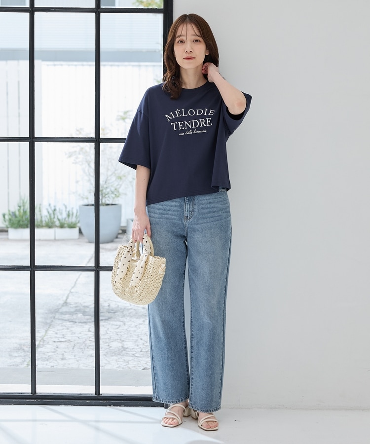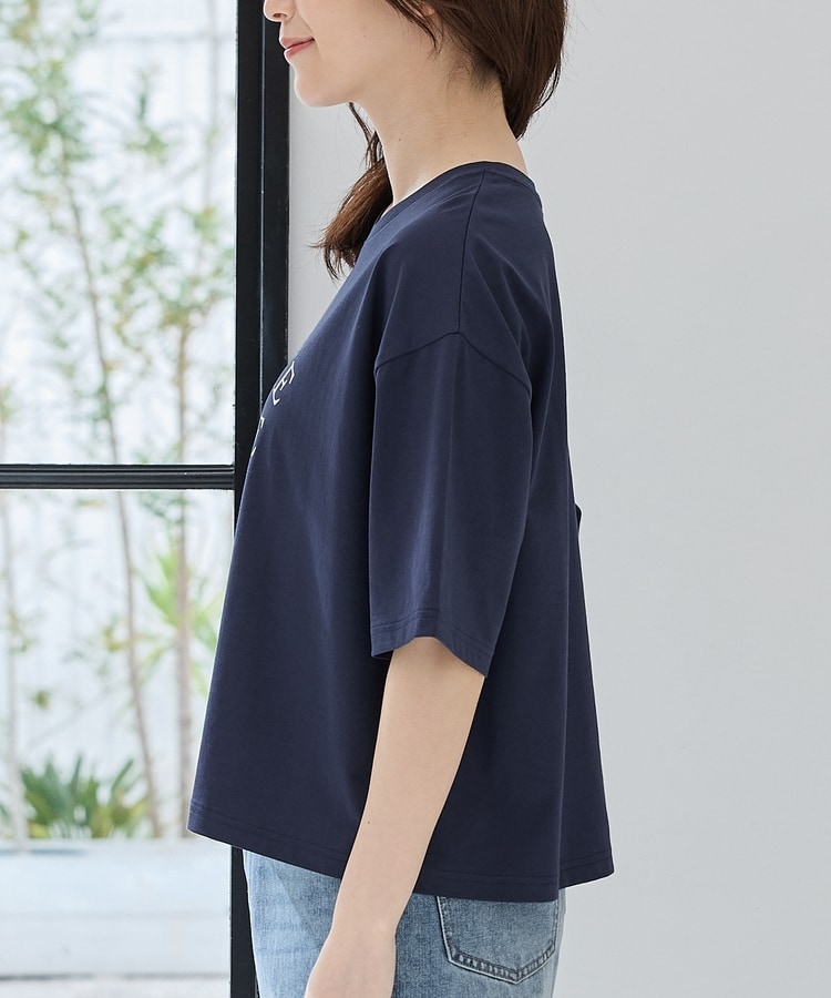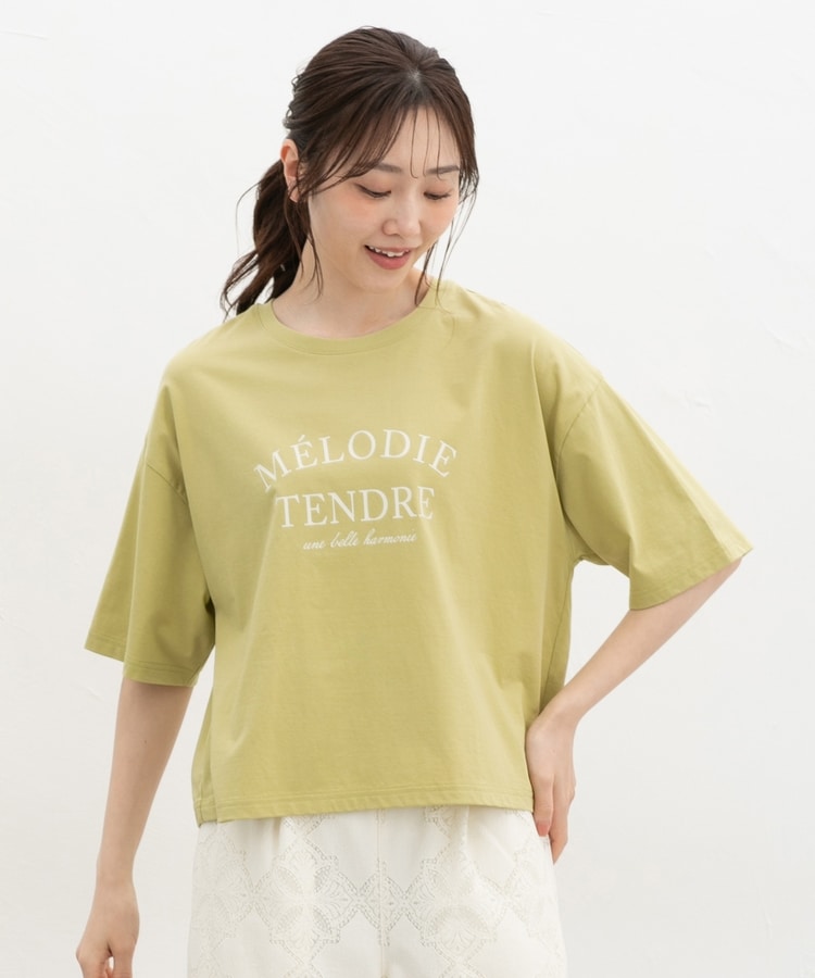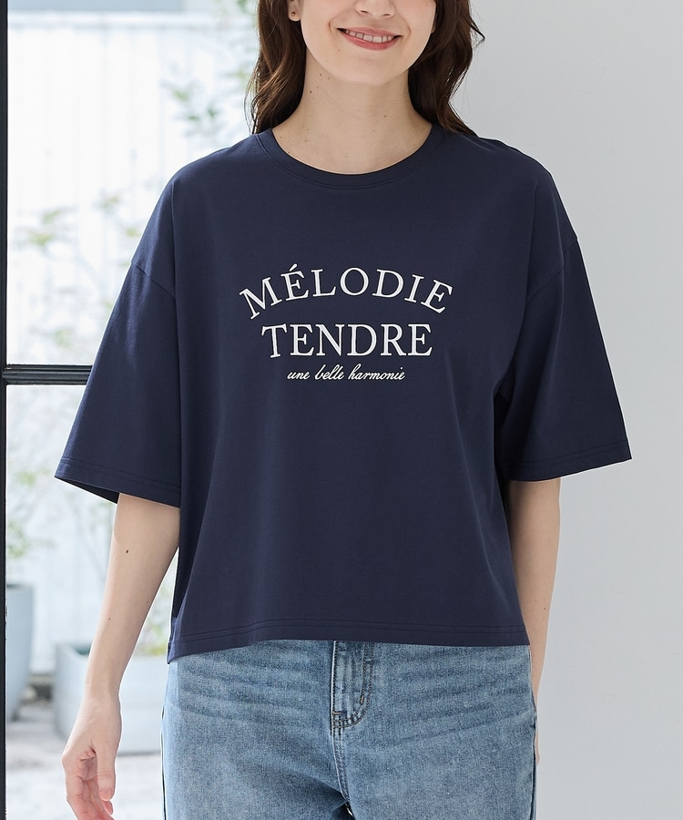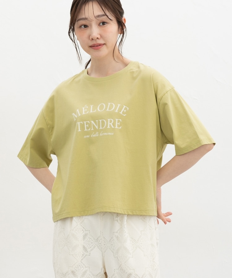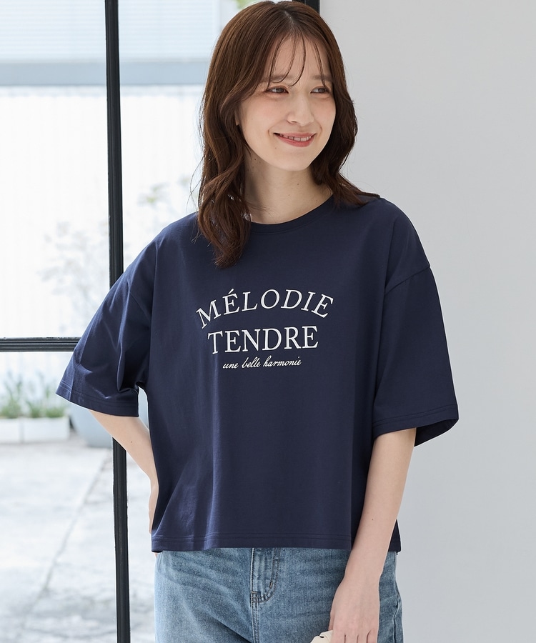 おしゃれフォントのロゴプリントがフェミニンなデザイン。