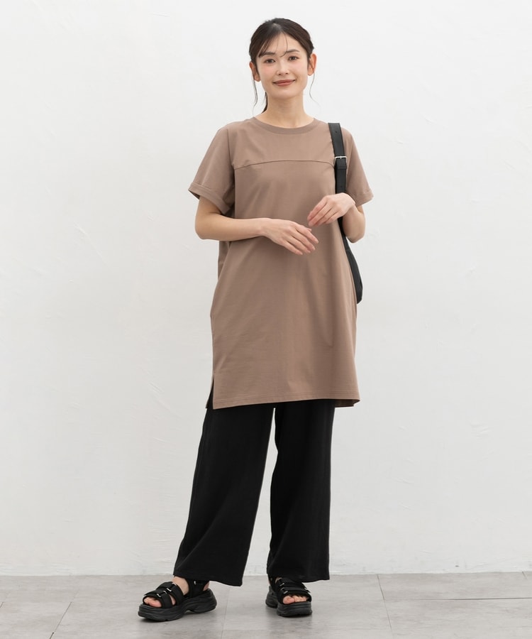 ワイドパンツやレギンスなどとのレイヤードスタイルがおすすめ。