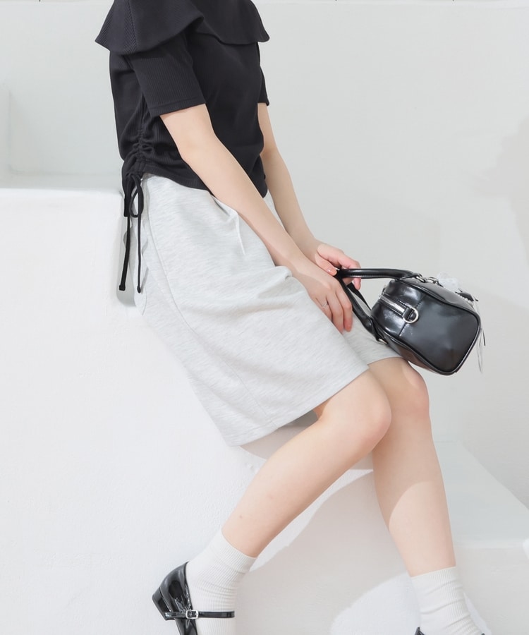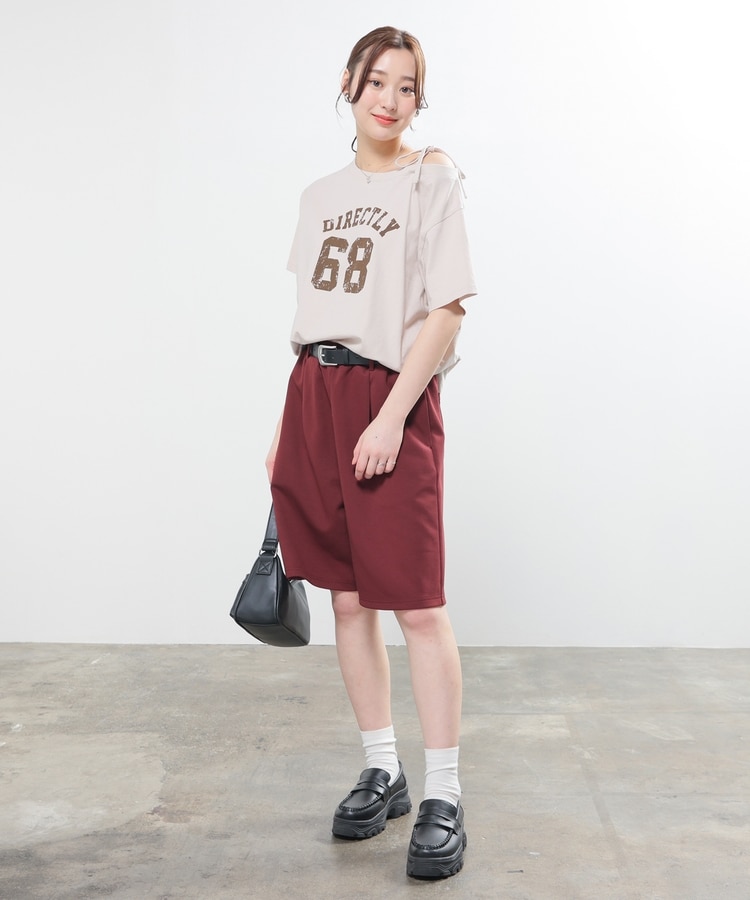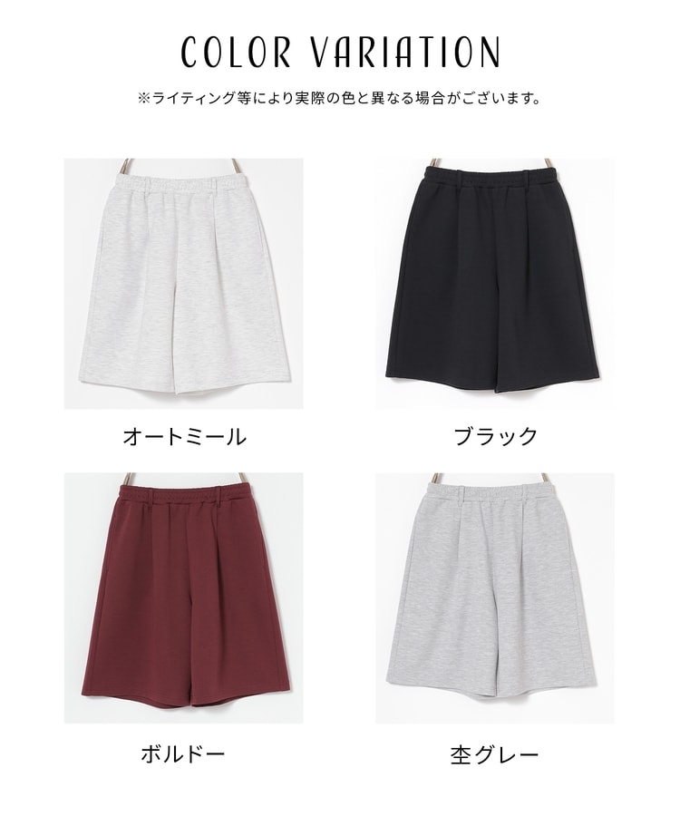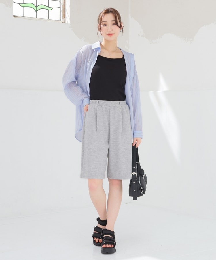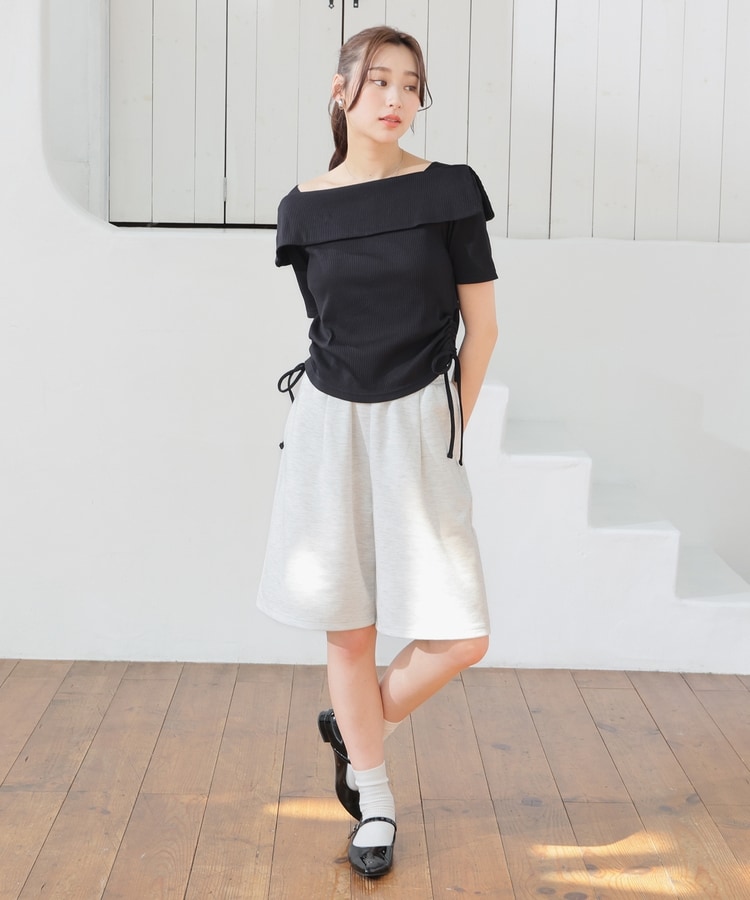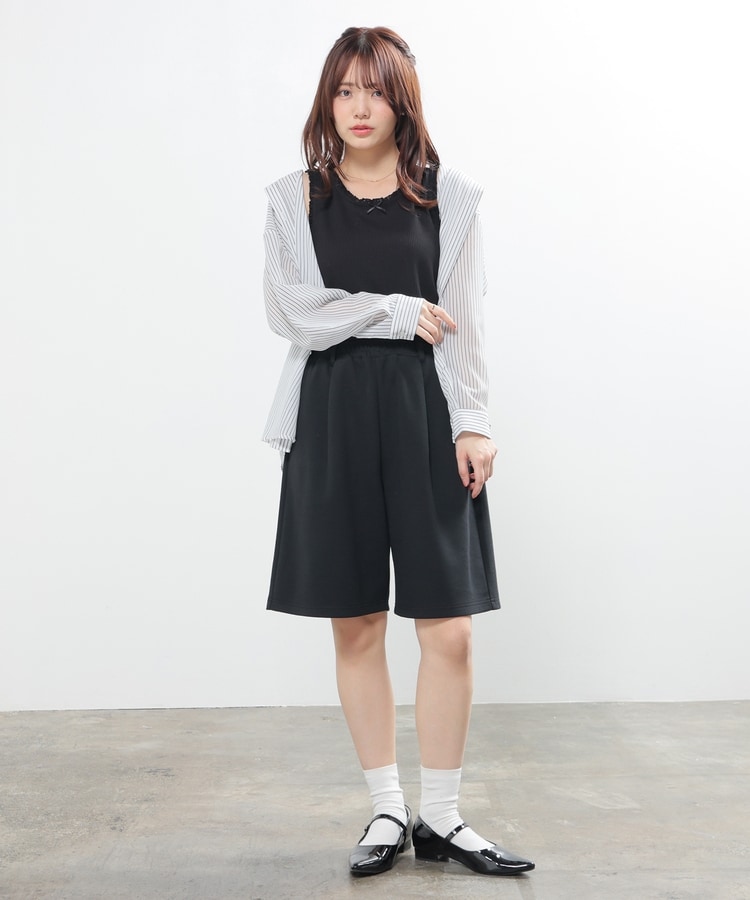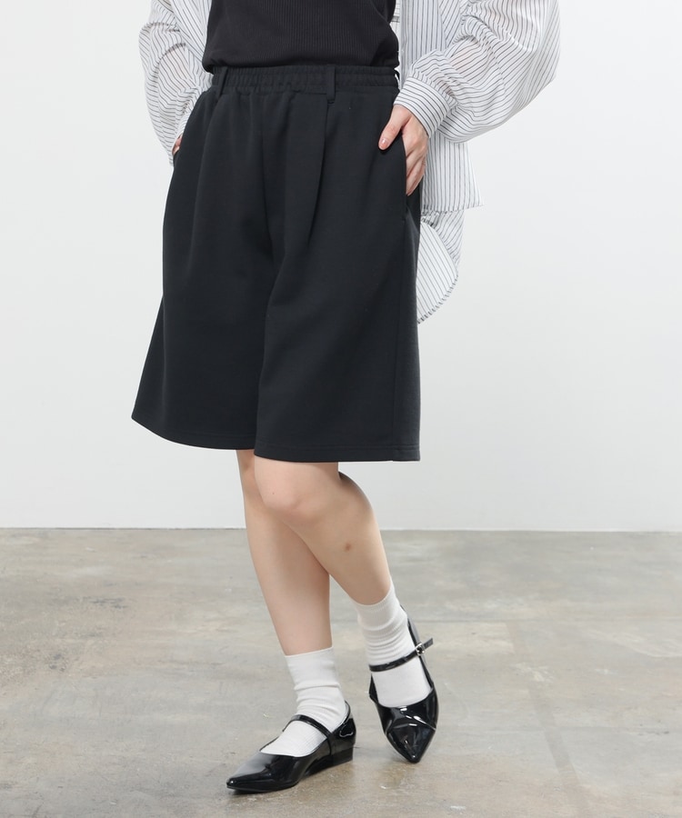 ウエスト総ゴムとハーフ丈でリラックス感のあるデザイン。