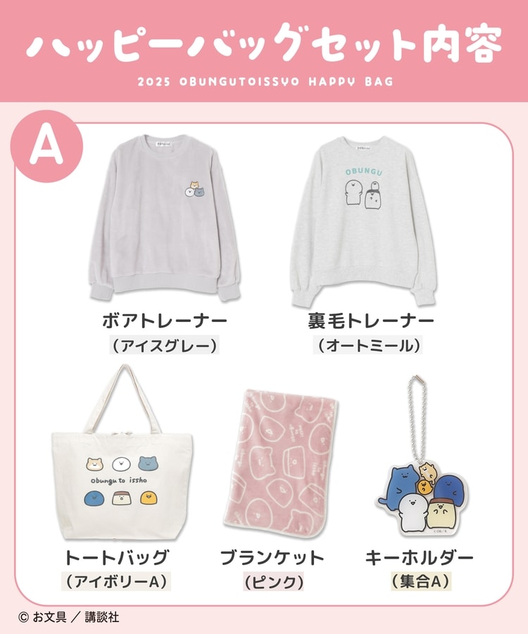 ●品質/[ボアトレーナー] 表地 ポリエステル 100%・別布 綿 58%・ポリエステル 40%・ポリウレタン 2% [裏毛トレーナー] 表地 綿 60%・ポリエステル 40%・別布 綿 59%・ポリエステル 39%・ポリウレタン 2% [ブランケット] 表地 ポリエステル 100%・別布 ポリエステル 100% [トートバッグ] 表地 綿 100%