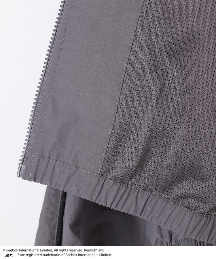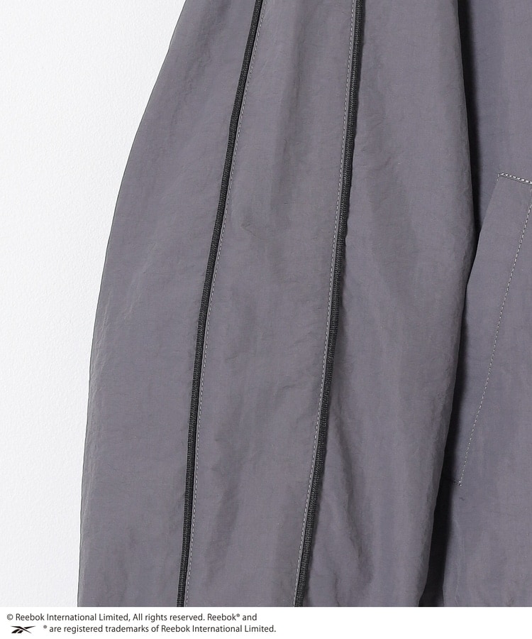 スポーティームードたっぷりな、シャカシャカとした綿混ナイロン素材。