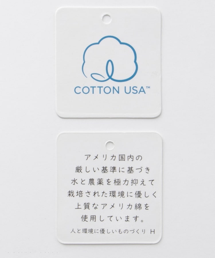 アメリカ国内の厳しい基準に基づき、水と農薬を極力抑えて栽培された、環境に優しく着心地もよいUSAコットン100%素材。