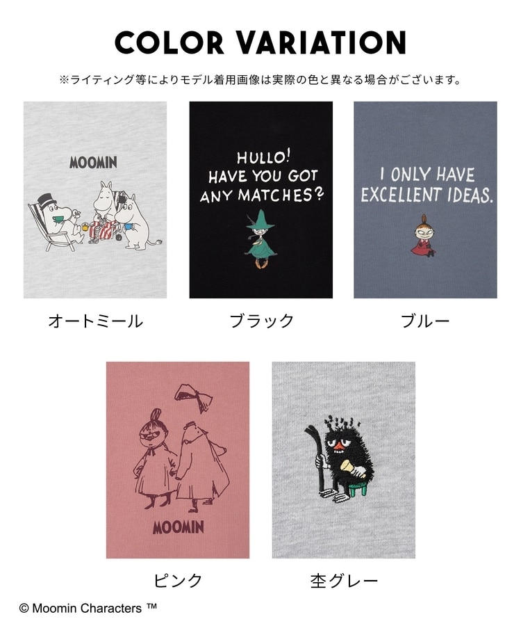 ムーミンと仲間たちのプリントや刺繍がおしゃれなデザイン。