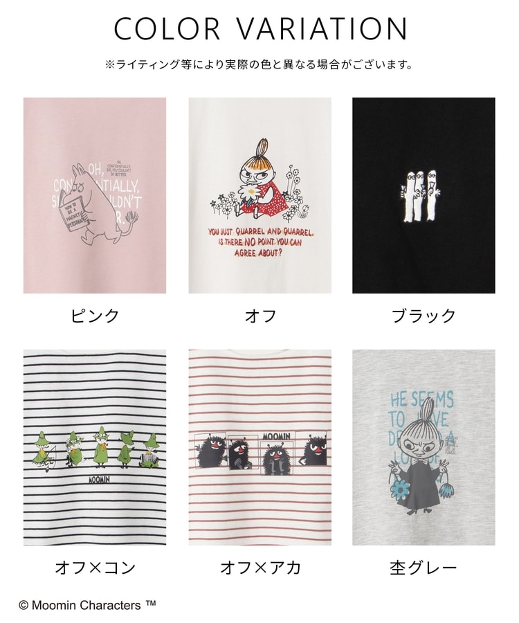 ムーミンと仲間たちのかわいい刺繍やプリントがおしゃれなデザイン。