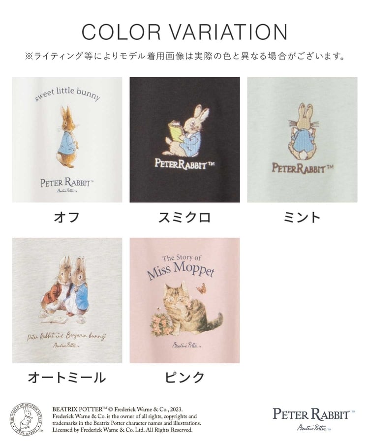 ピーターラビット™のナチュラルなプリントや刺繍が可愛いらしいデザイン。