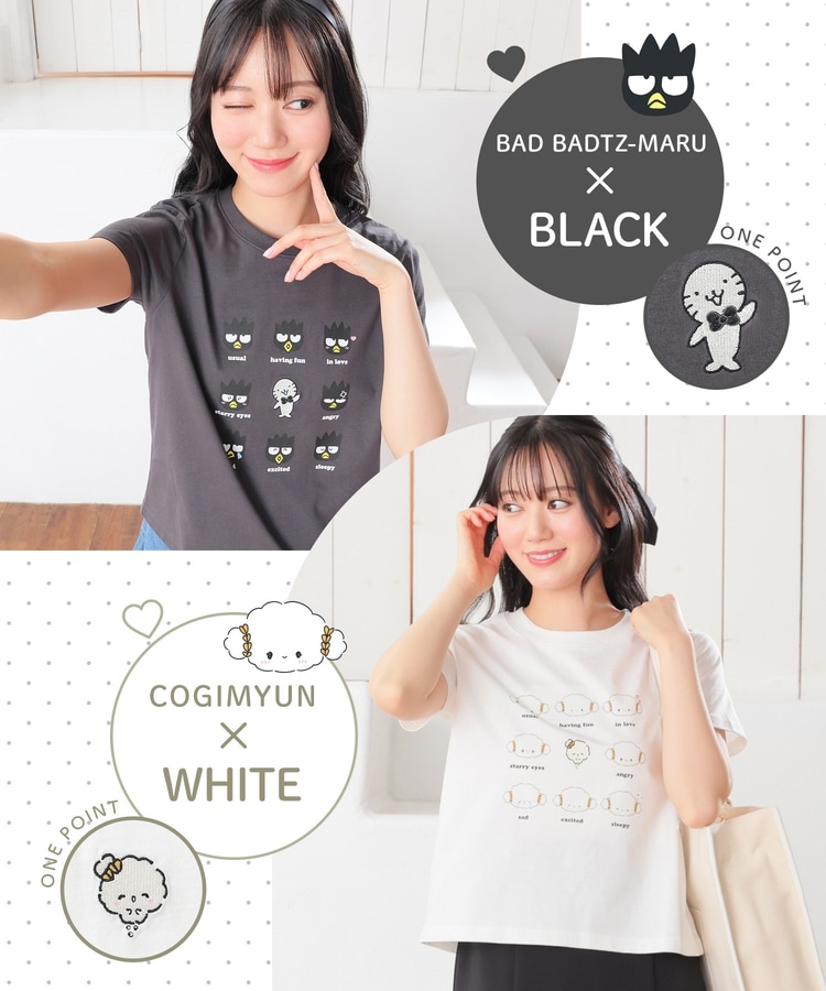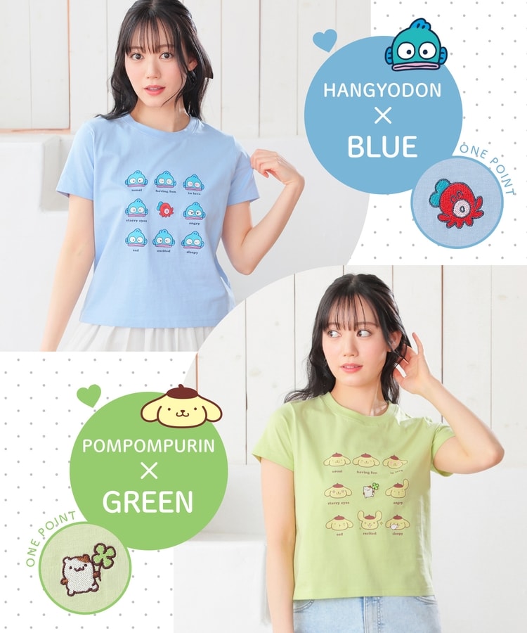 さまざまな表情がキュートな「ハローキティ」「マイメロディ」「シナモロール」「クロミ」「ポチャッコ」「ハンギョドン」「ポムポムプリン」「バッドばつ丸」「こぎみゅん」のポップなプリント!