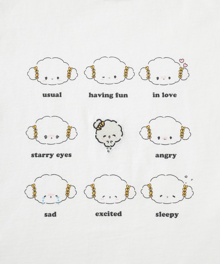 中央には仲良しな「タイニーチャム」「りすくん」「みるく」「バク」「ピーちゃん」「さゆり」「マフィン」「グッドはな丸」「こぎみょん」のオシャレな刺繍でアクセントをプラス♪