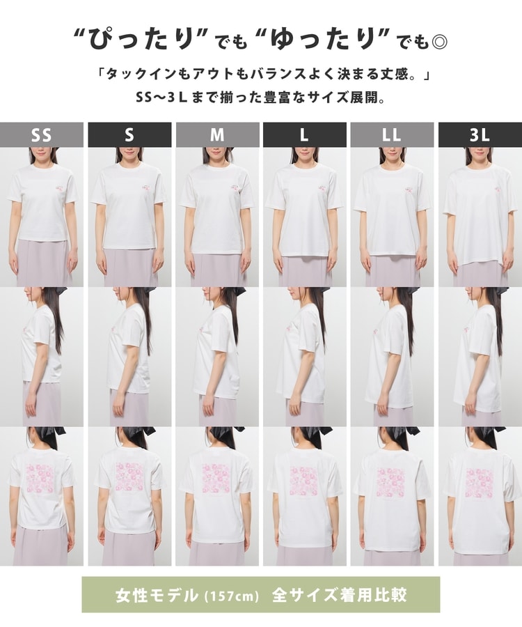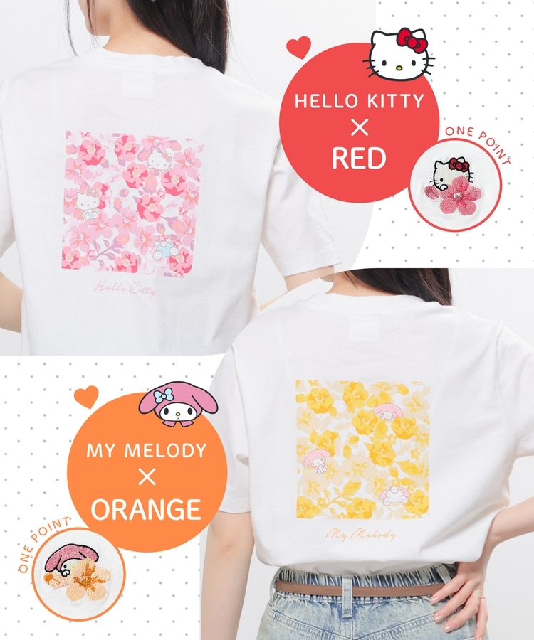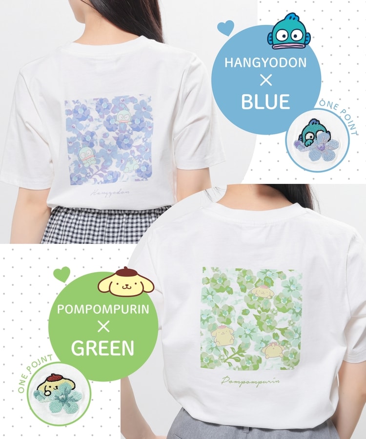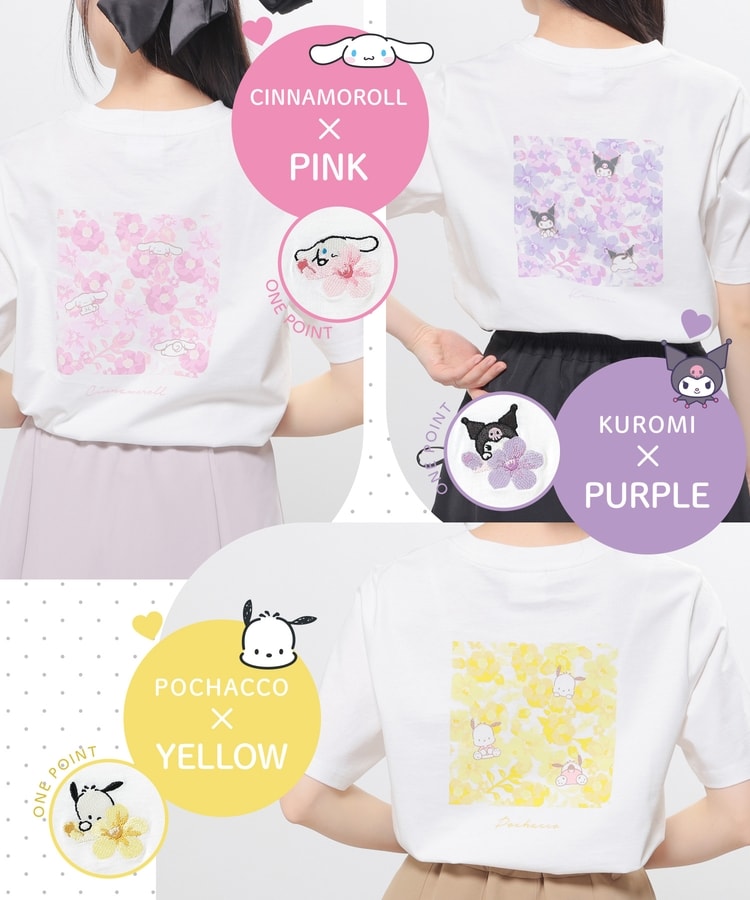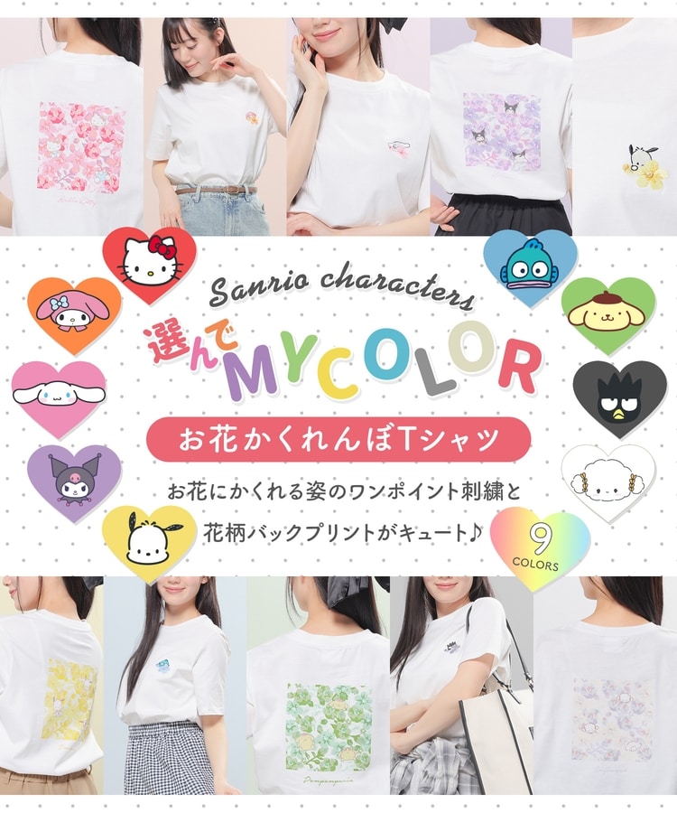 「ハローキティ」「マイメロディ」「シナモロール」「クロミ」「ポチャッコ」「ハンギョドン」「ポムポムプリン」「バッドばつ丸」「こぎみゅん」のさりげなくお花に隠れたデザインがエイジレスで着られるポイント♪
