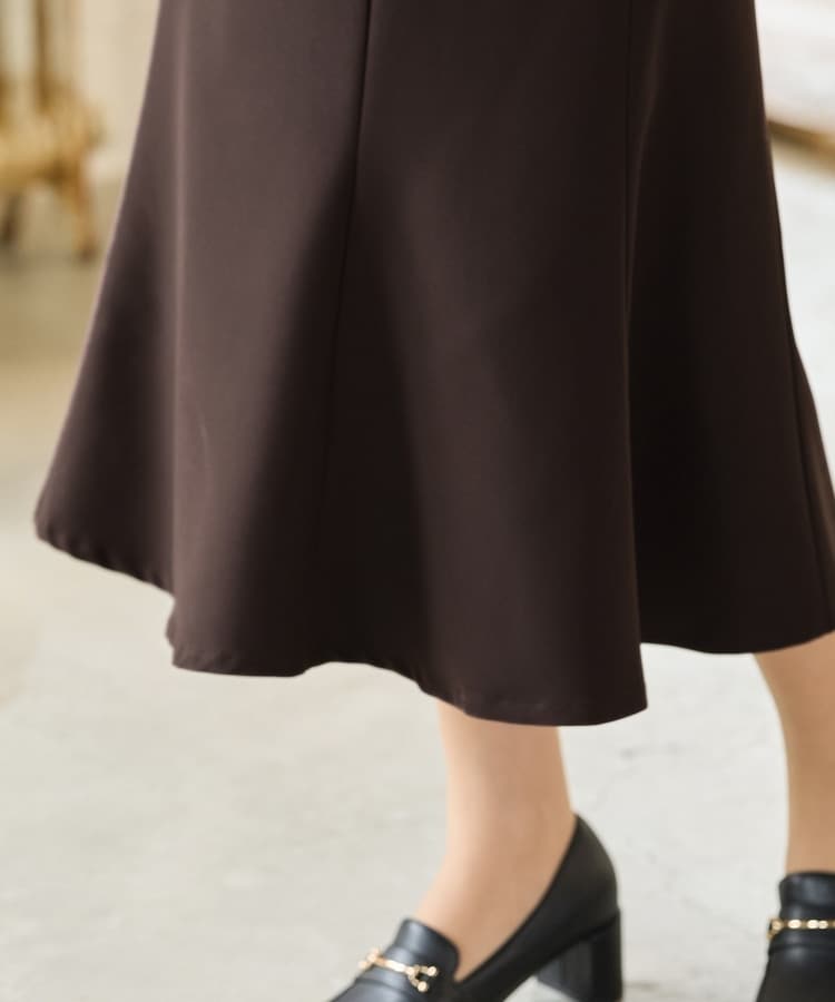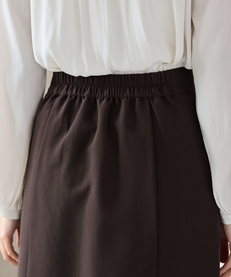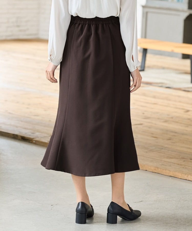 前ウエストはすっきりきれい見えしながら、後ろはゴムで快適なはき心地。