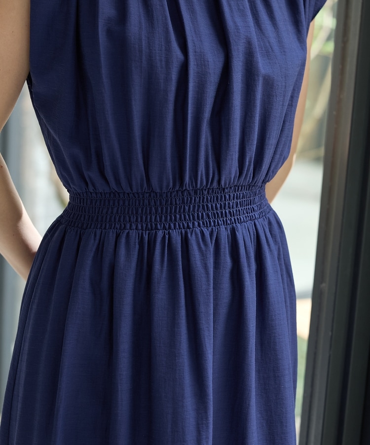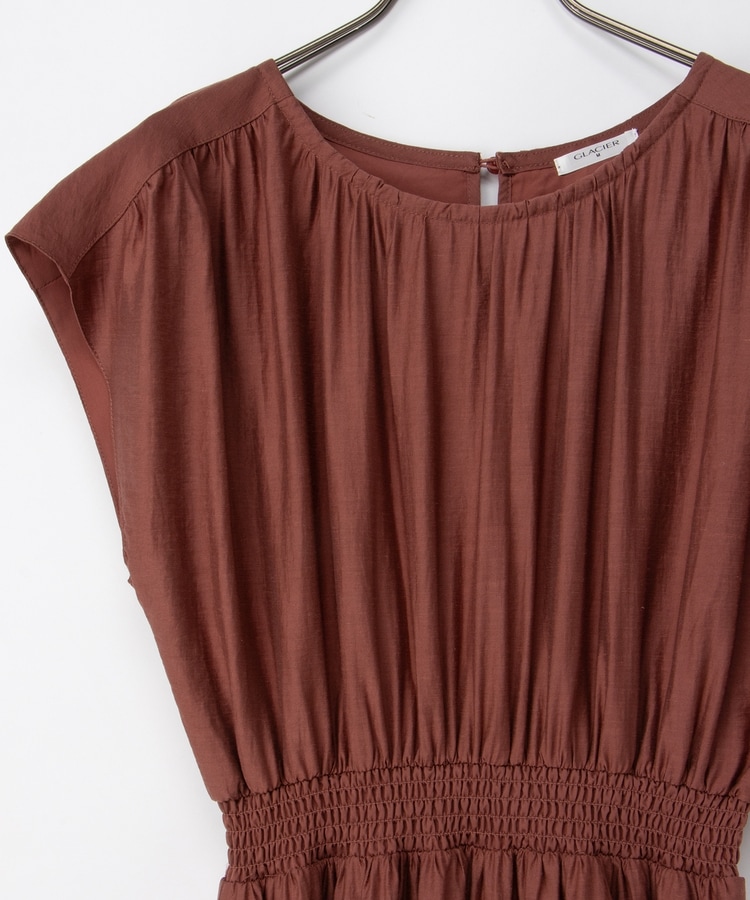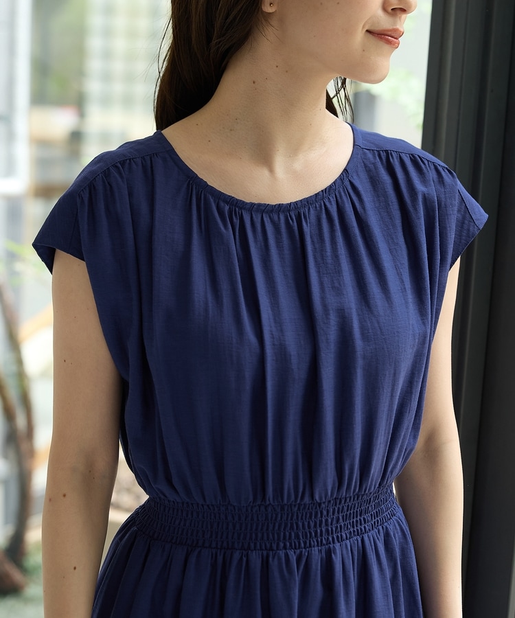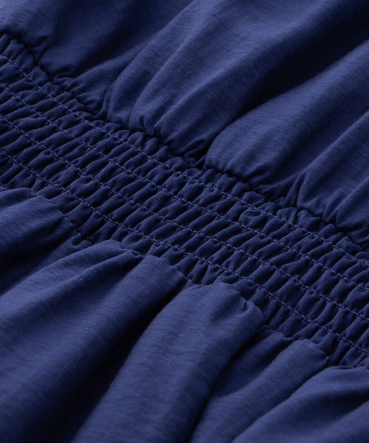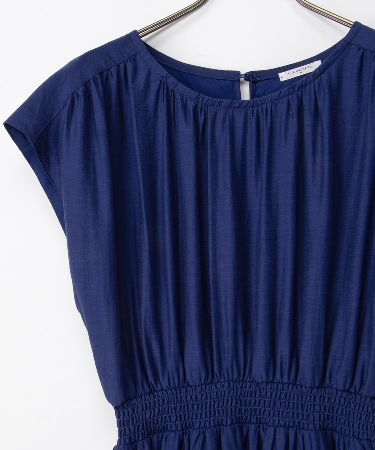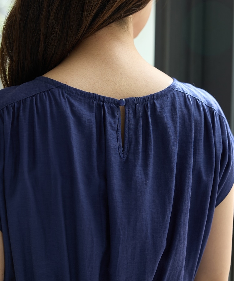 清涼感のある、なめらかな肌触りで程よい透け感の、レーヨン・麻混シアー素材。