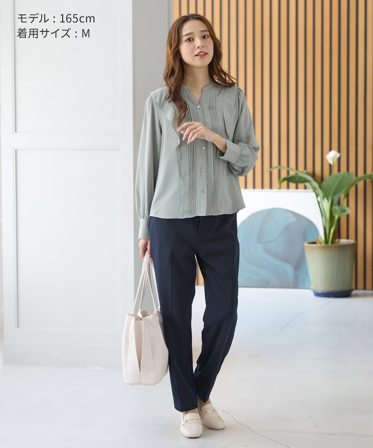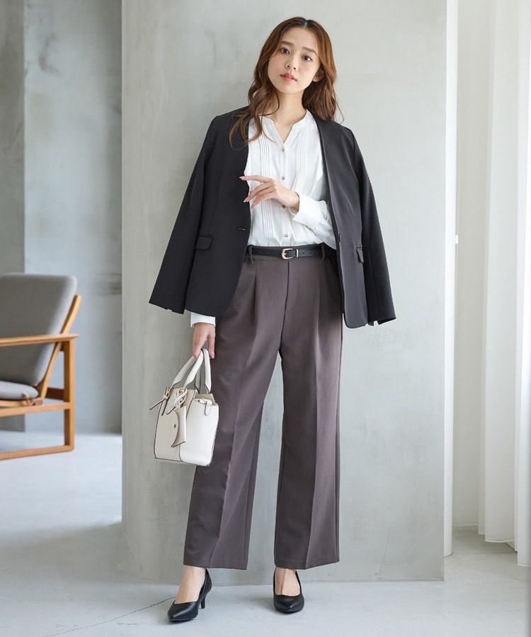 ジャケットにも合うサイズ感で、テーパードパンツやフレアスカートと合わせた、お仕事やフォーマルのきれいめスタイルに活躍。
