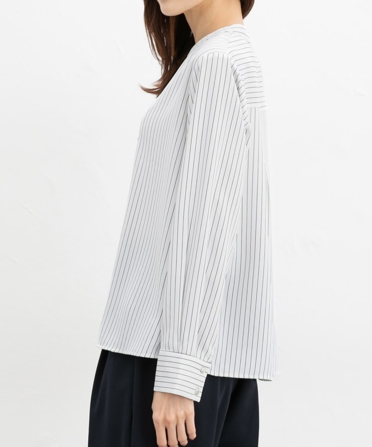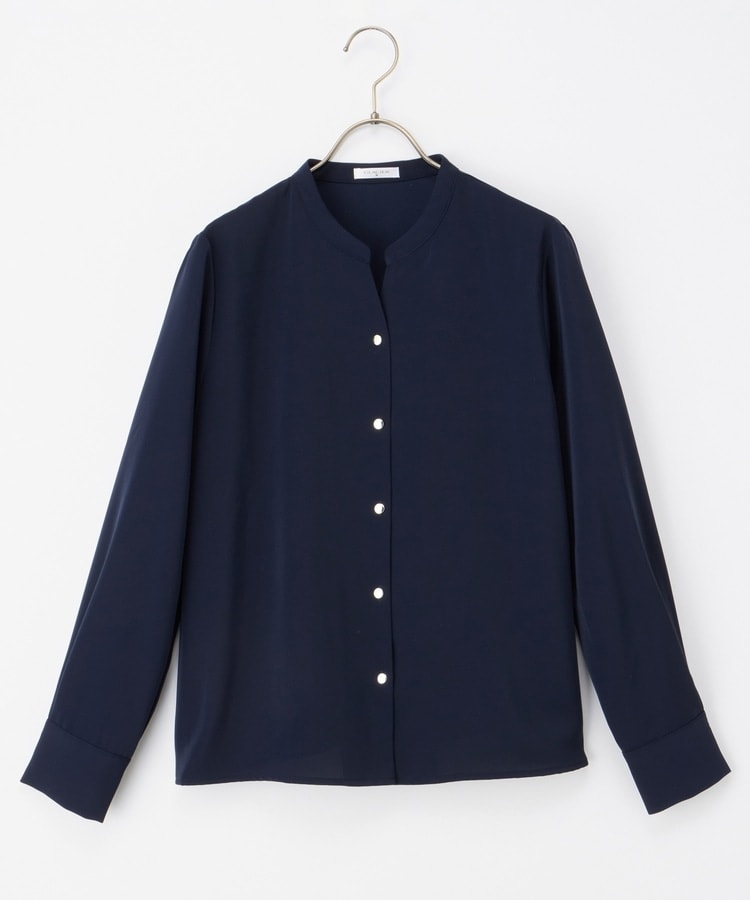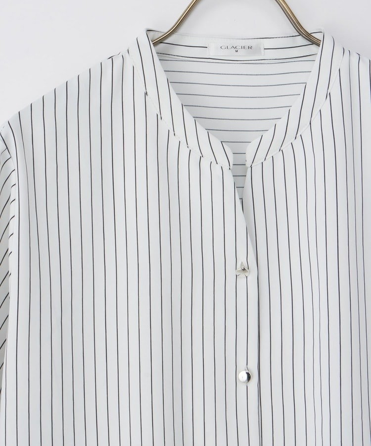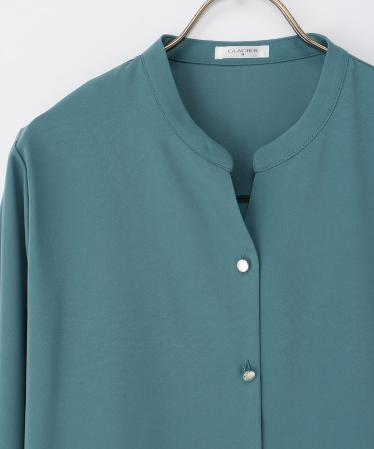 首元がすっきりきれいに見えるマオカラーのスキッパーデザイン。