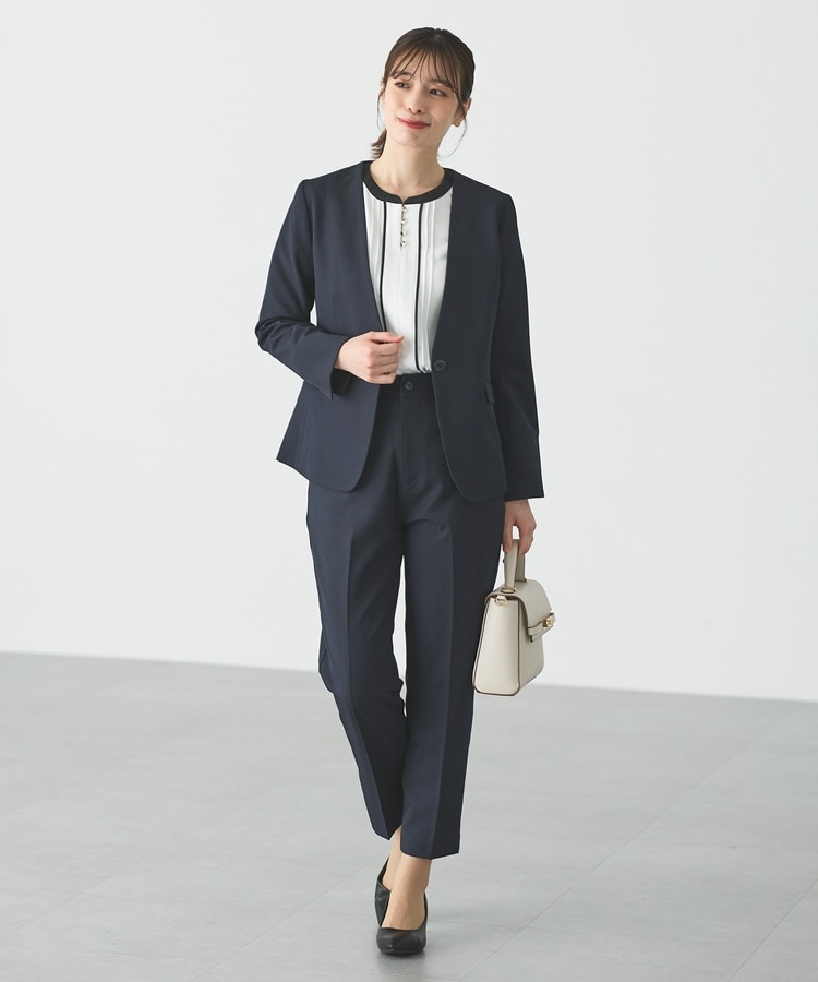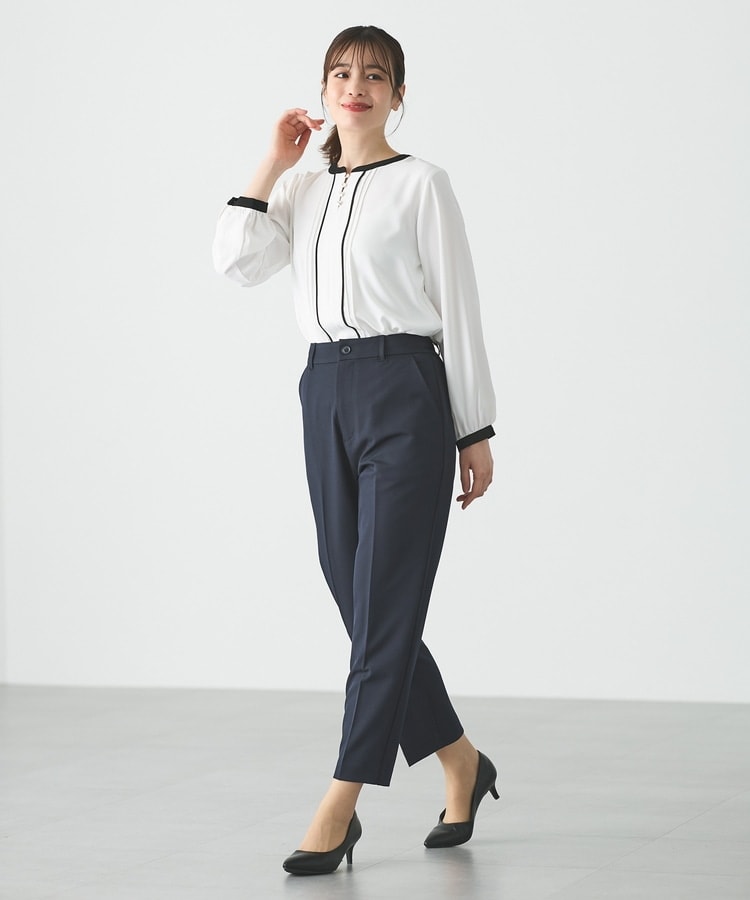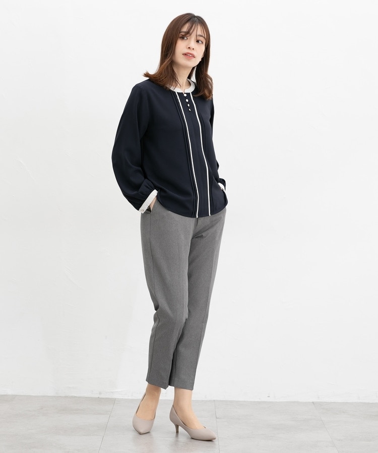 ジャケットにも合うサイズ感で、フレアスカートやテーパードパンツと合わせたきれいめお仕事スタイルに大活躍。