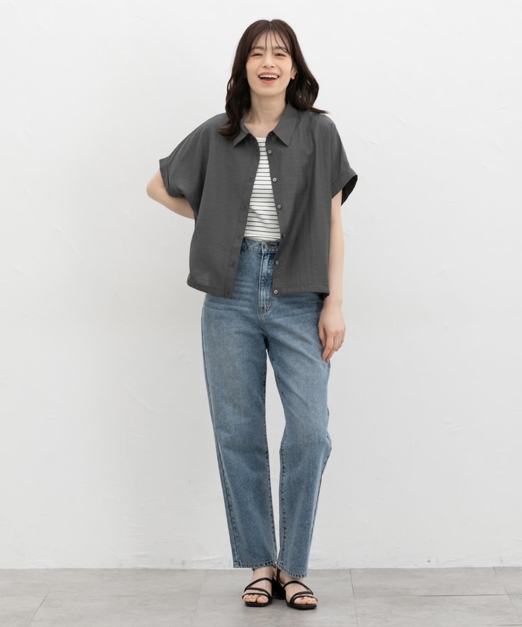 ゆったりした幅と、ヒップまですっぽり隠れる丈感の前後差ヘムで、スタイルアップも体型カバーも◎