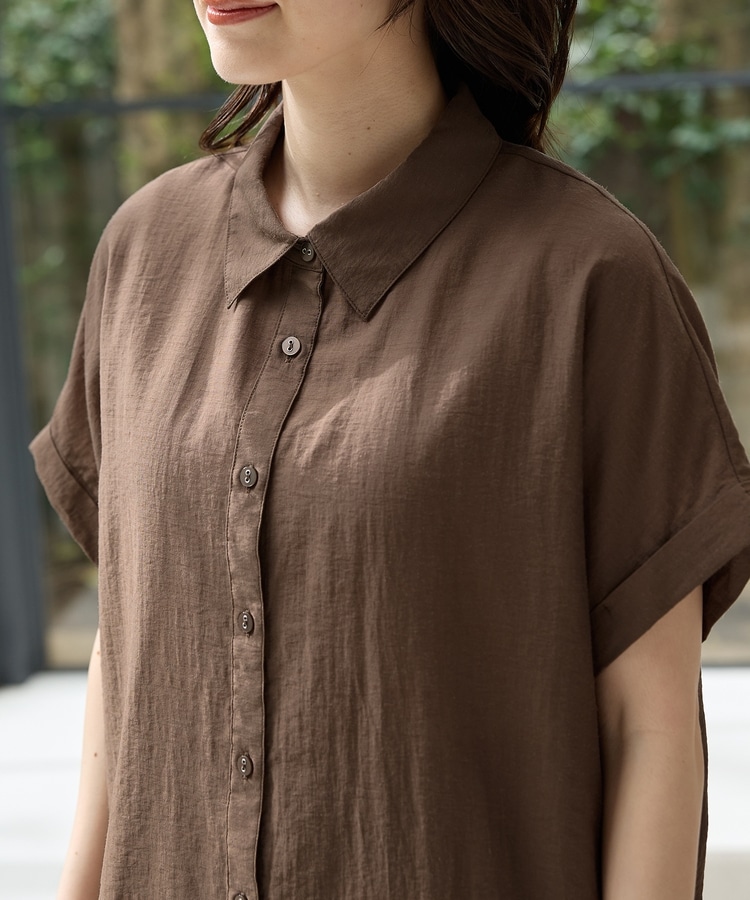 程よい透け感で柔らかく上品な印象のレーヨン・麻混シアー素材。