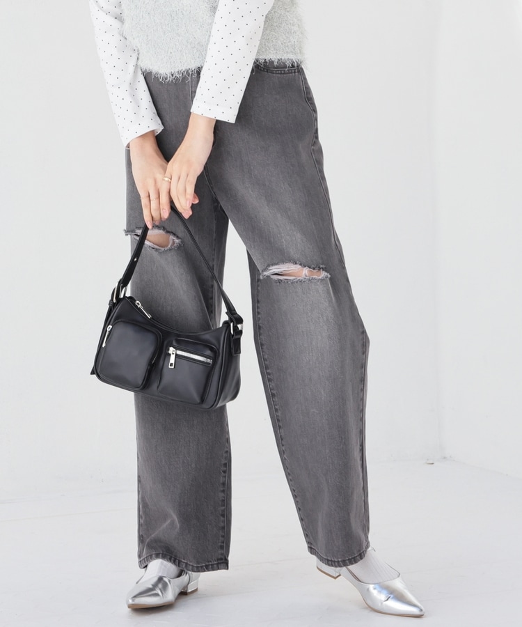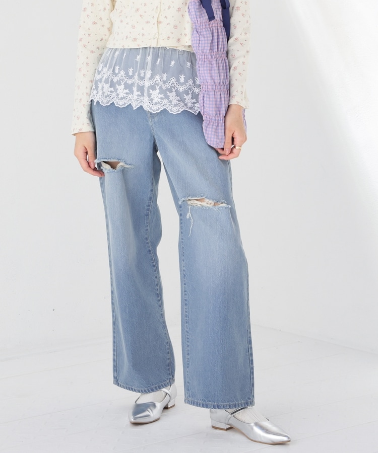 ストンと落ちるすっきりストレートなシルエットとハイウエストで、脚長効果抜群。