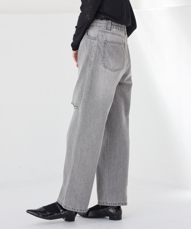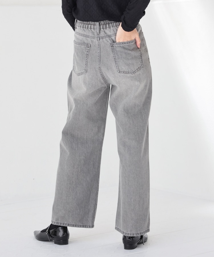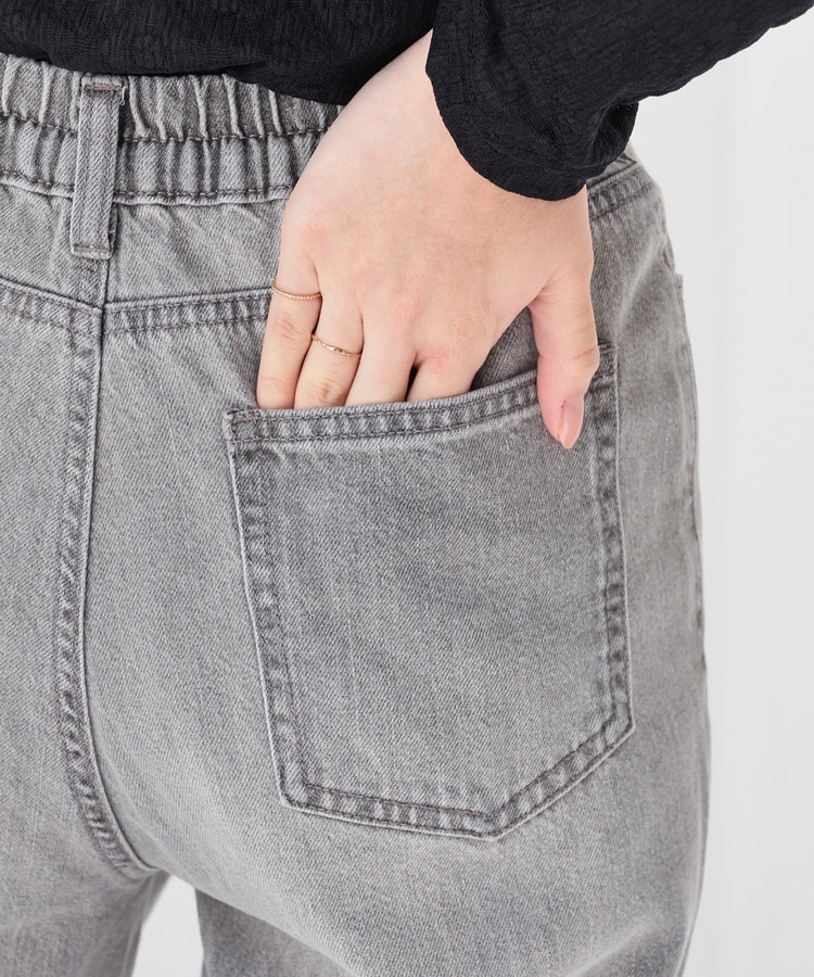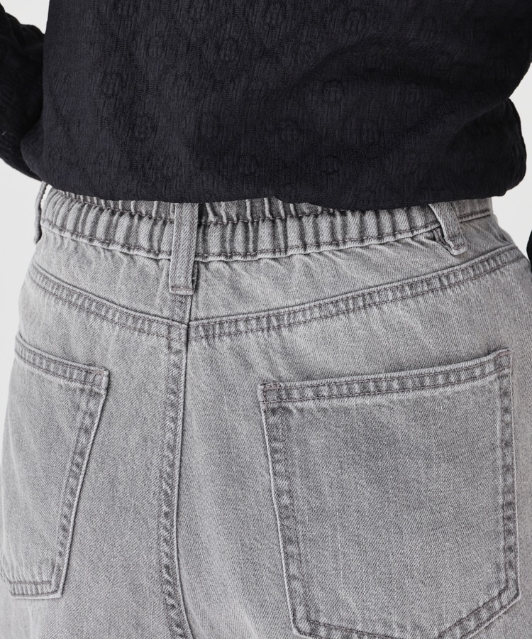 後ウエストはゴム仕様でストレスフリーなはき心地。