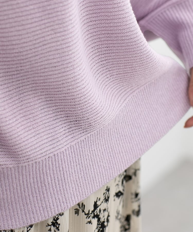 さりげない編み柄と上品なラメがアクセントになるデザイン。