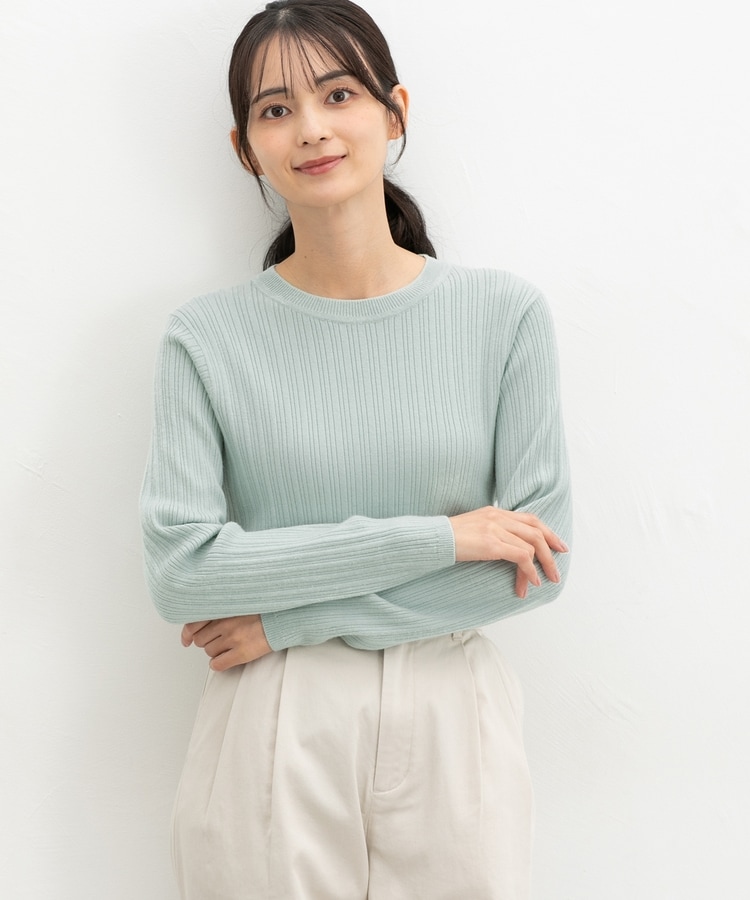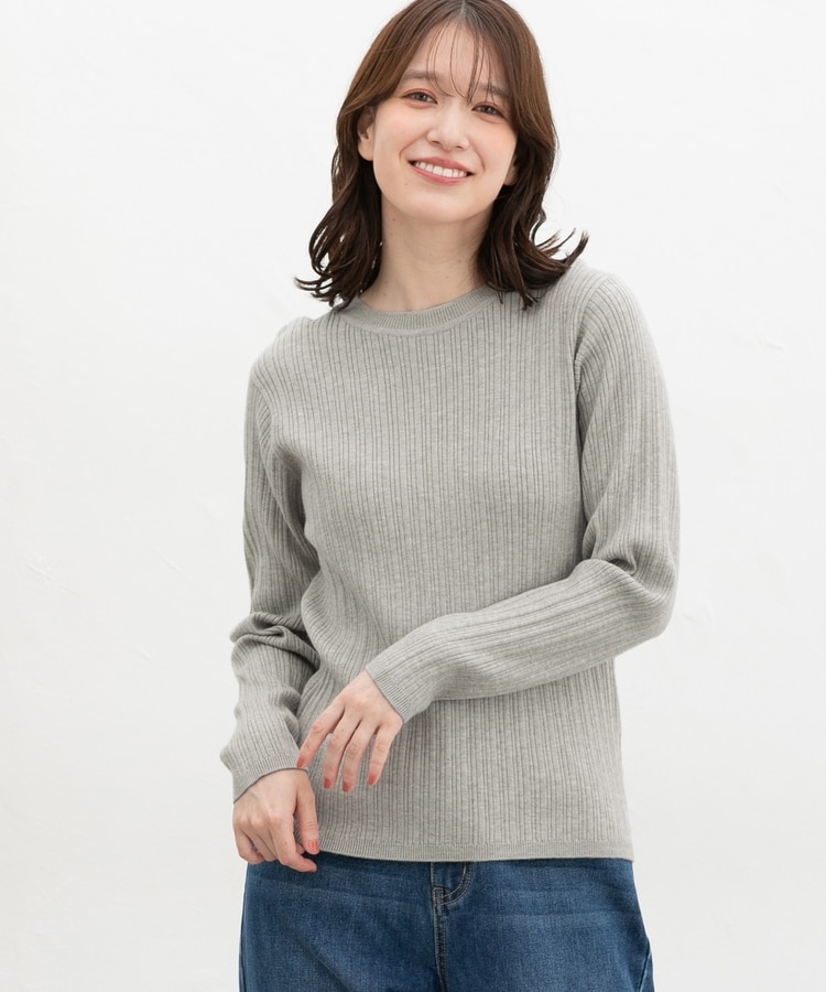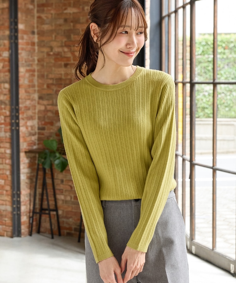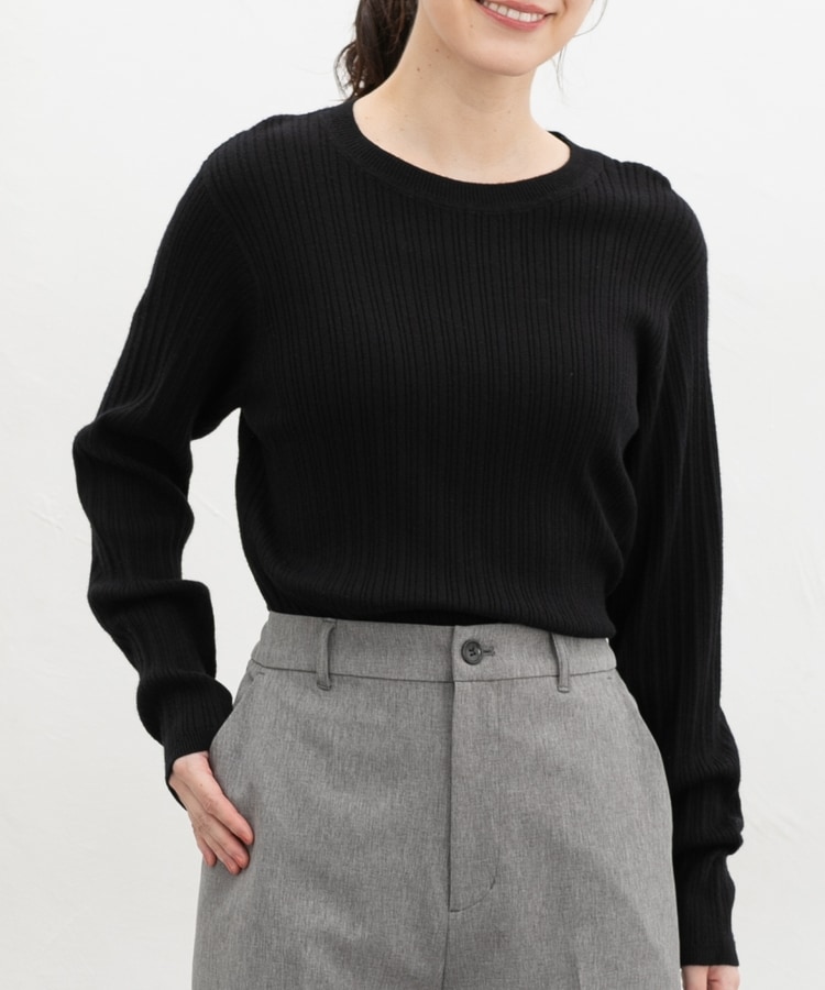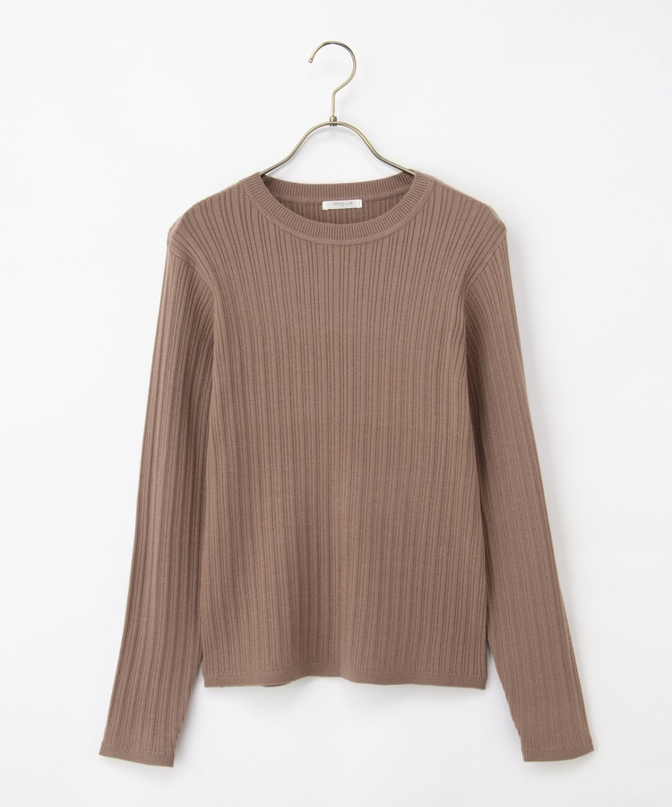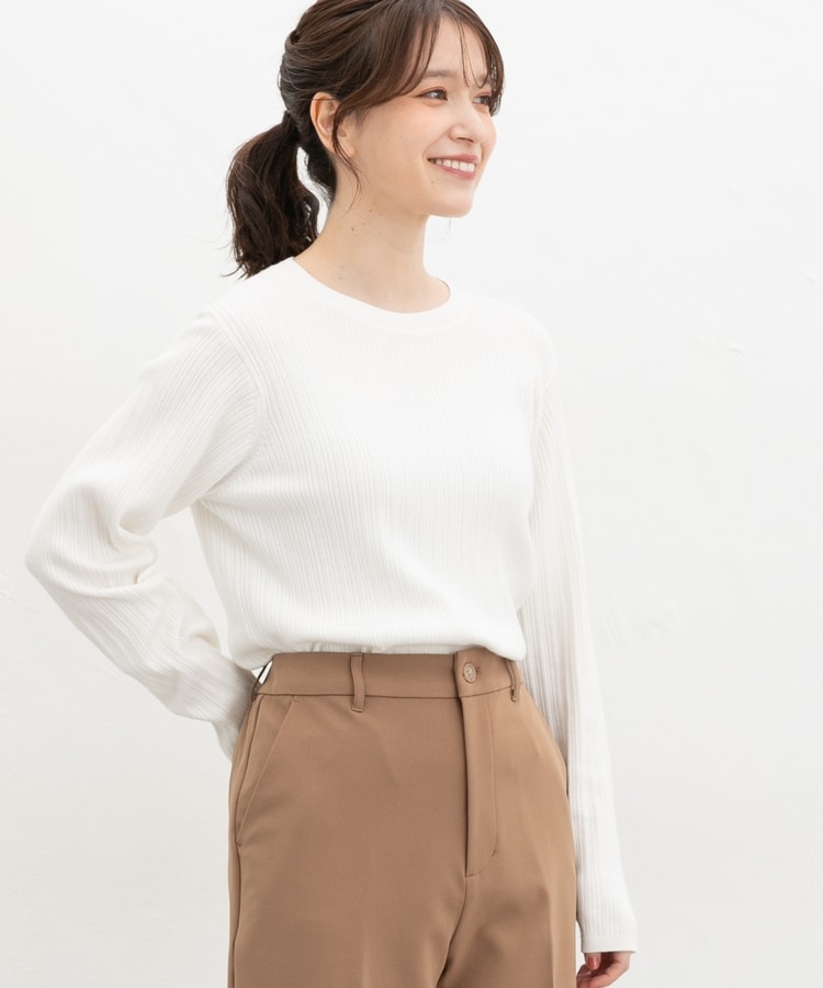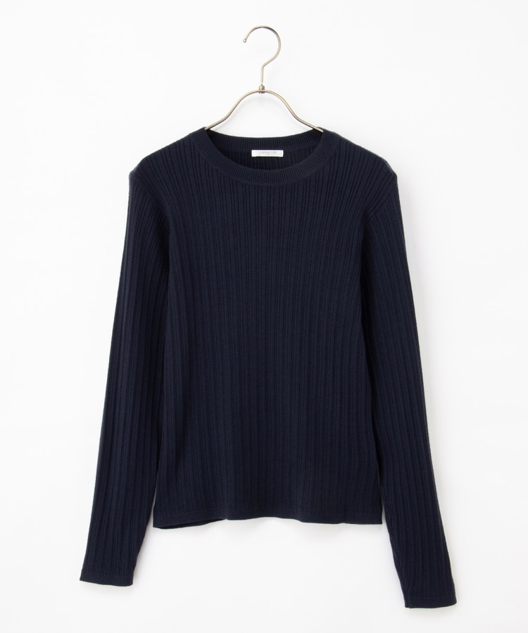 ランダムなリブがお洒落な、クルーネックのシンプルデザイン。