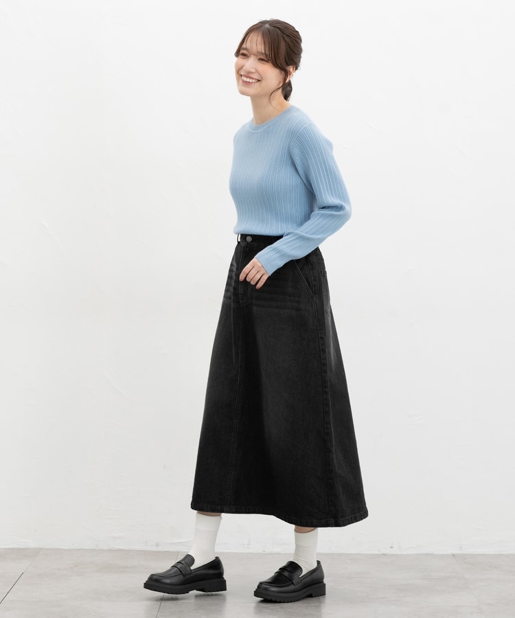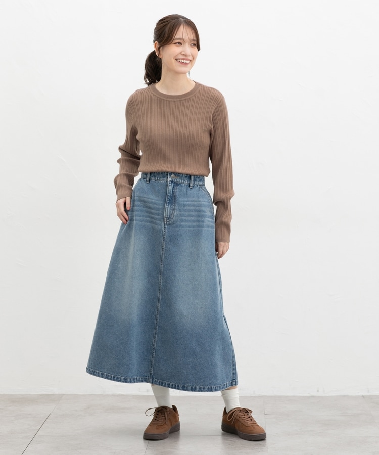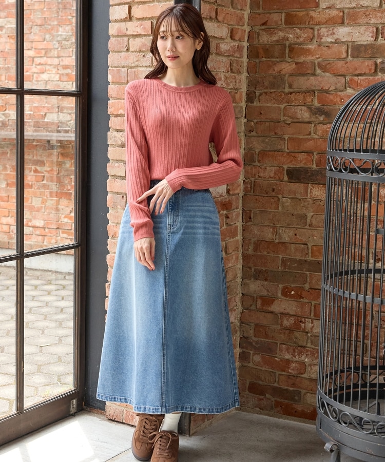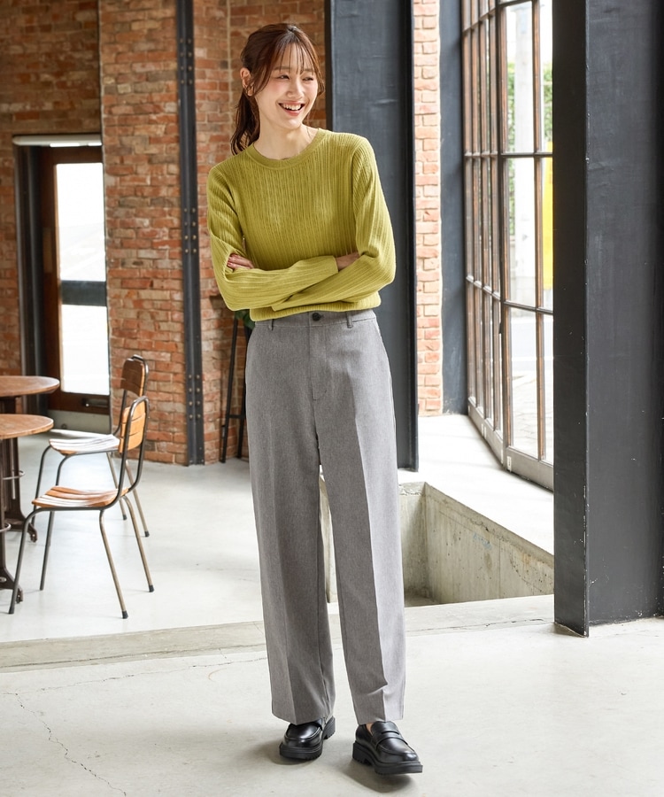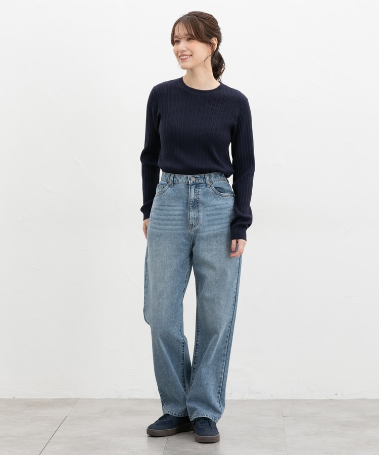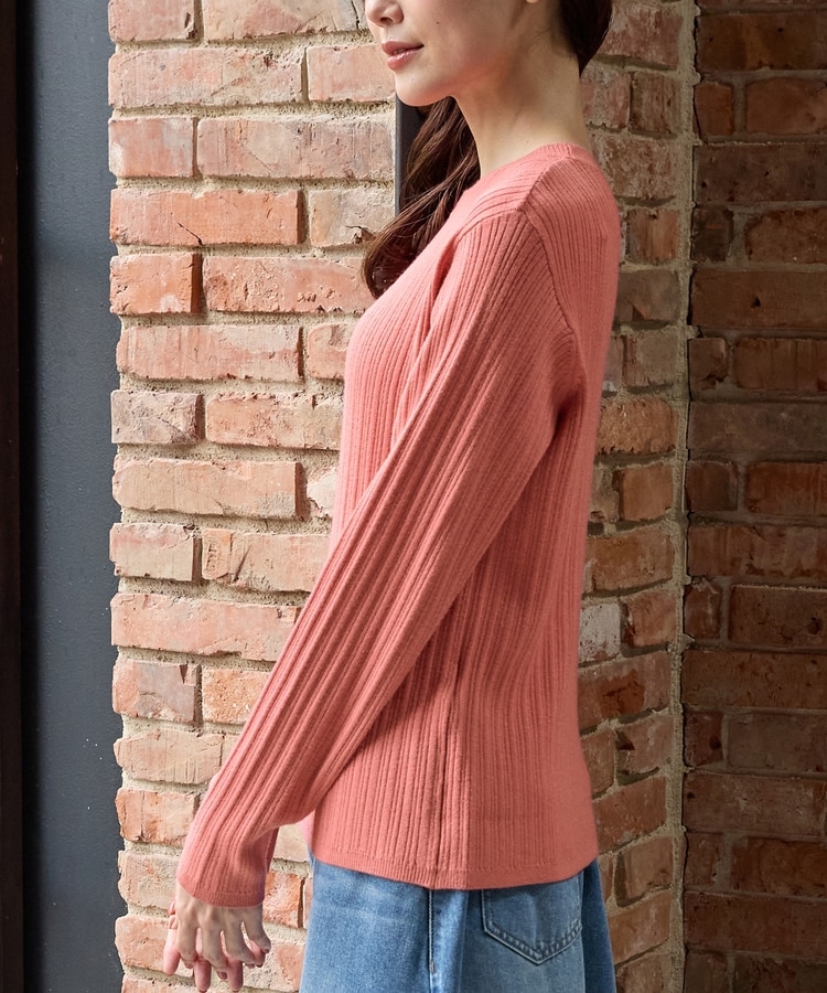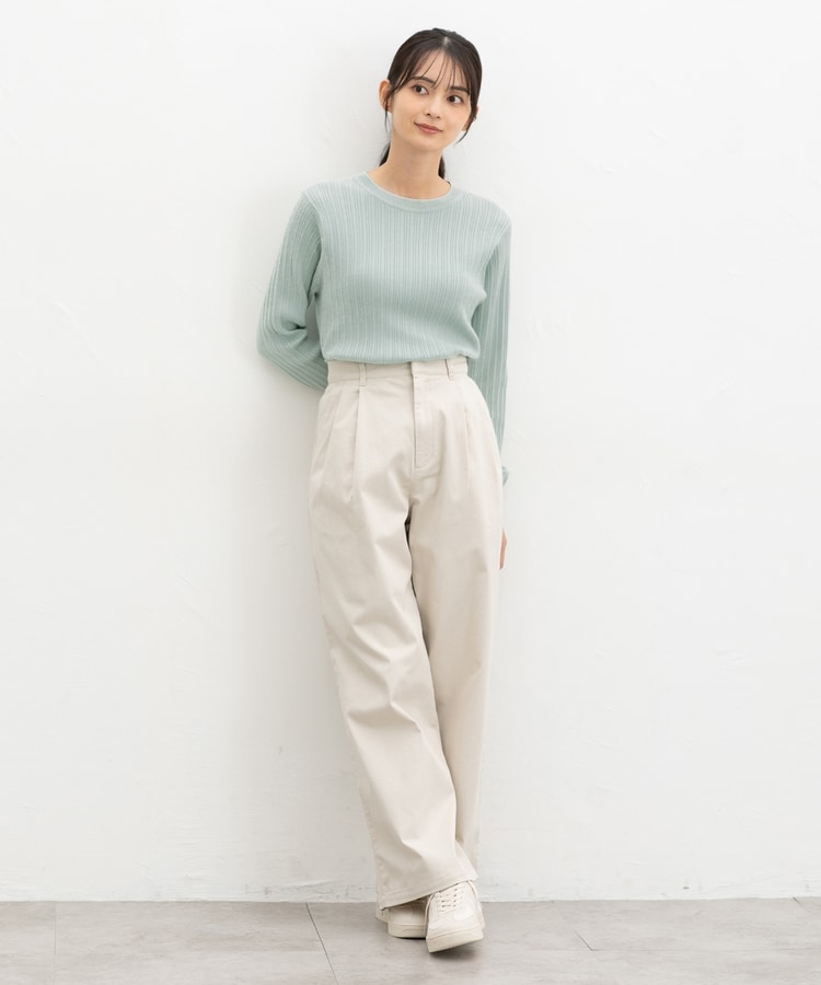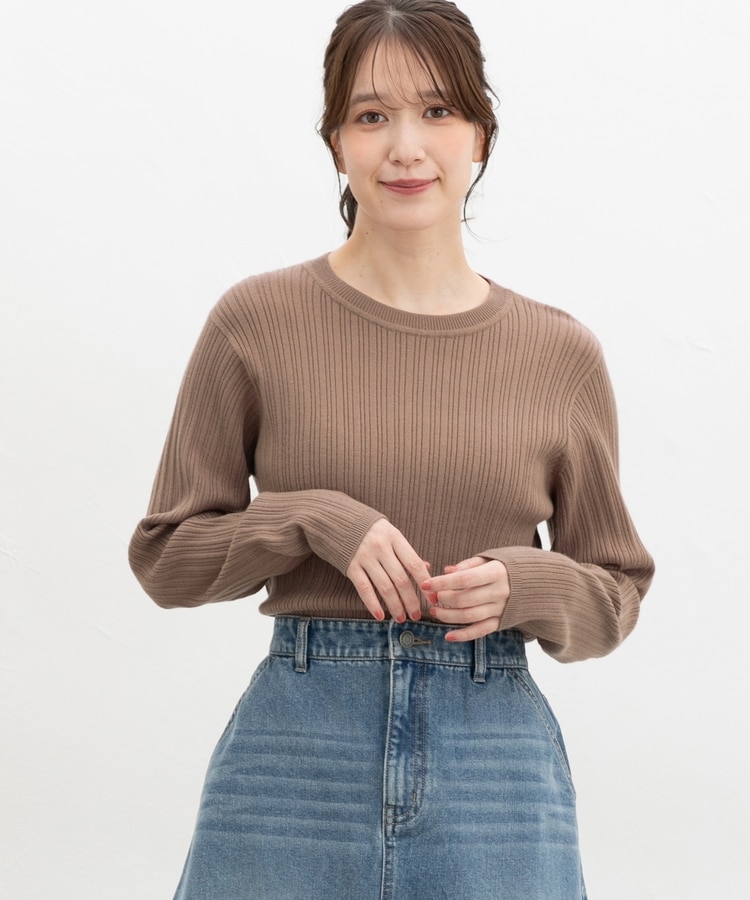 ランダムなリブがお洒落な、クルーネックのシンプルデザイン。
